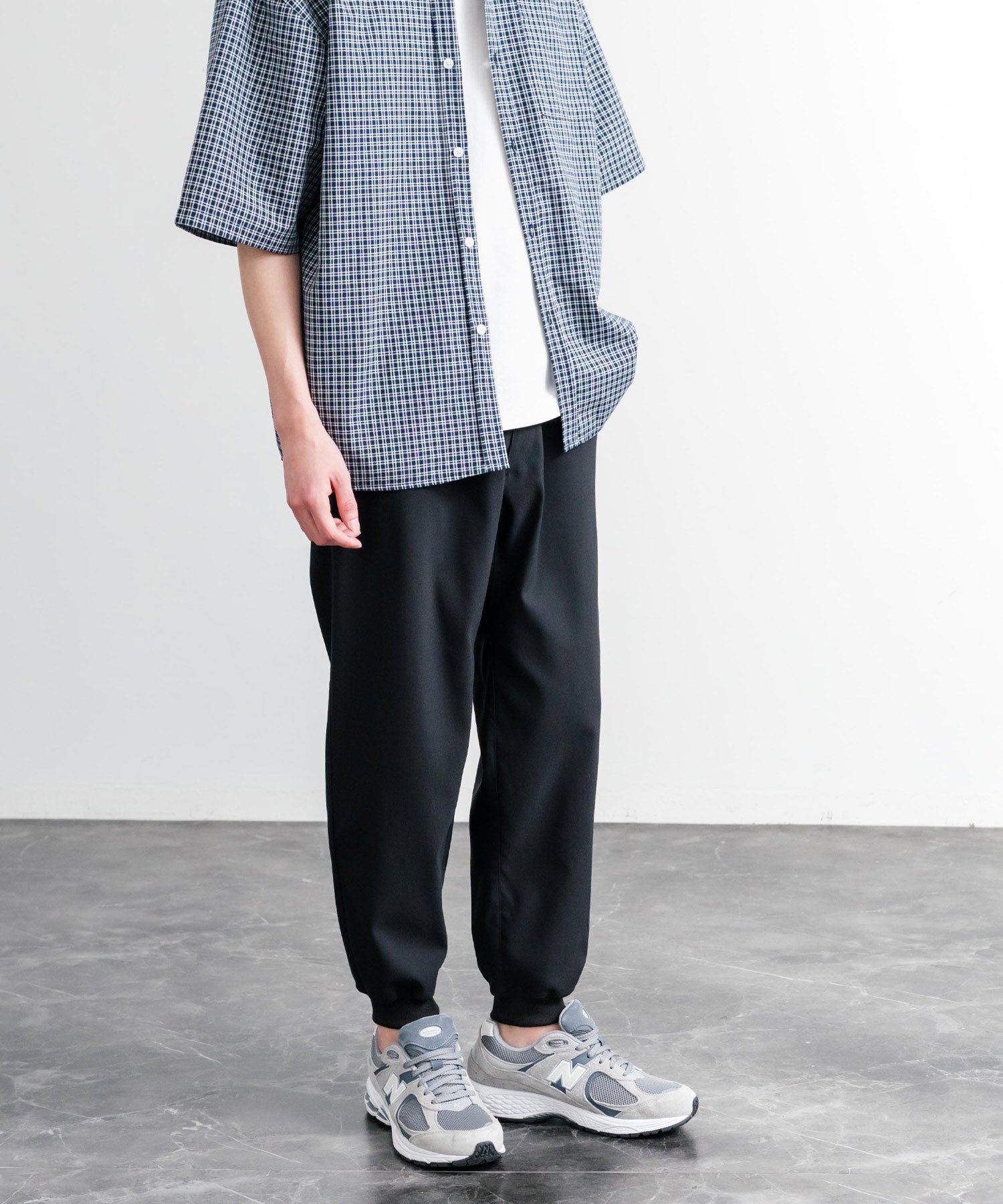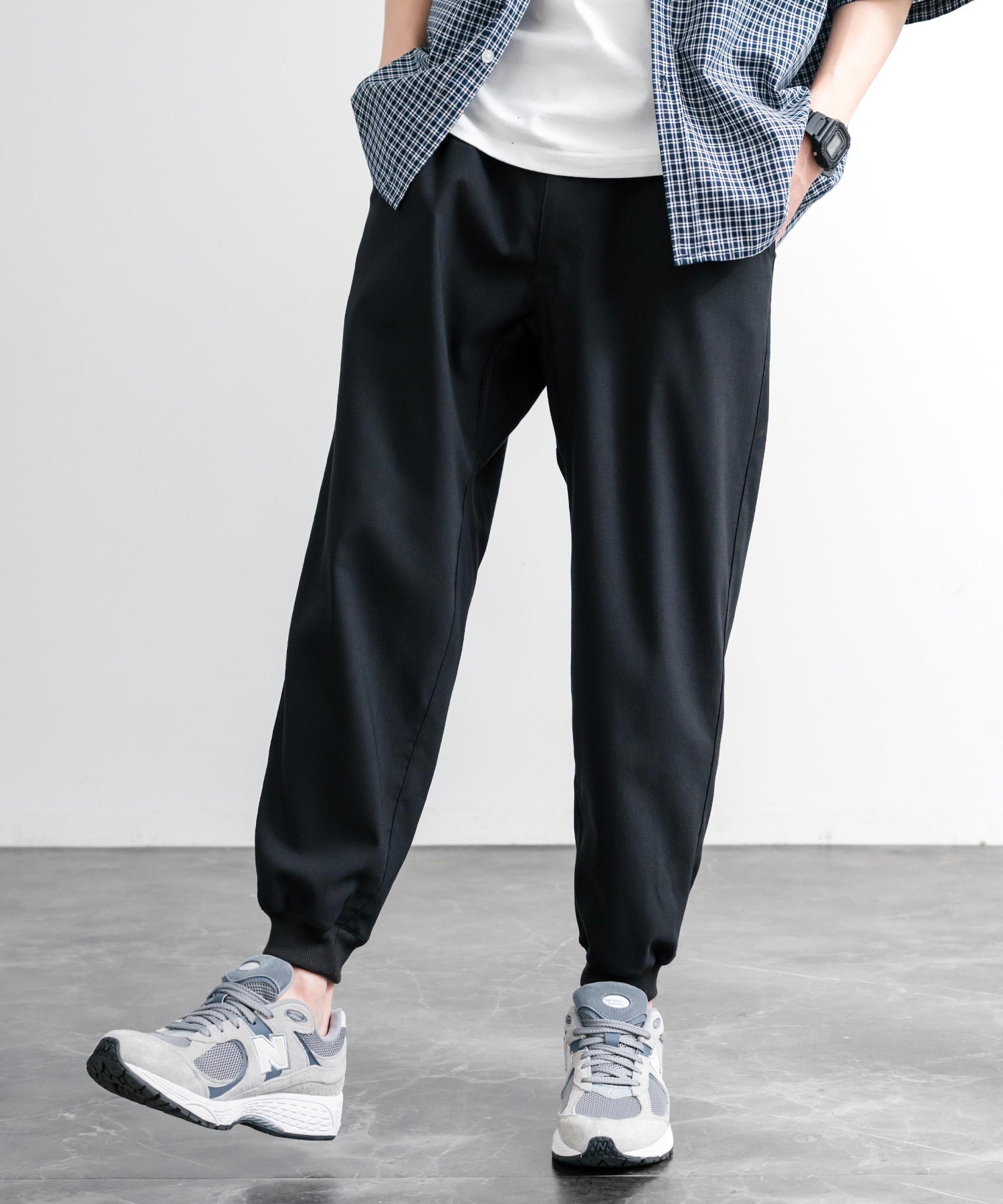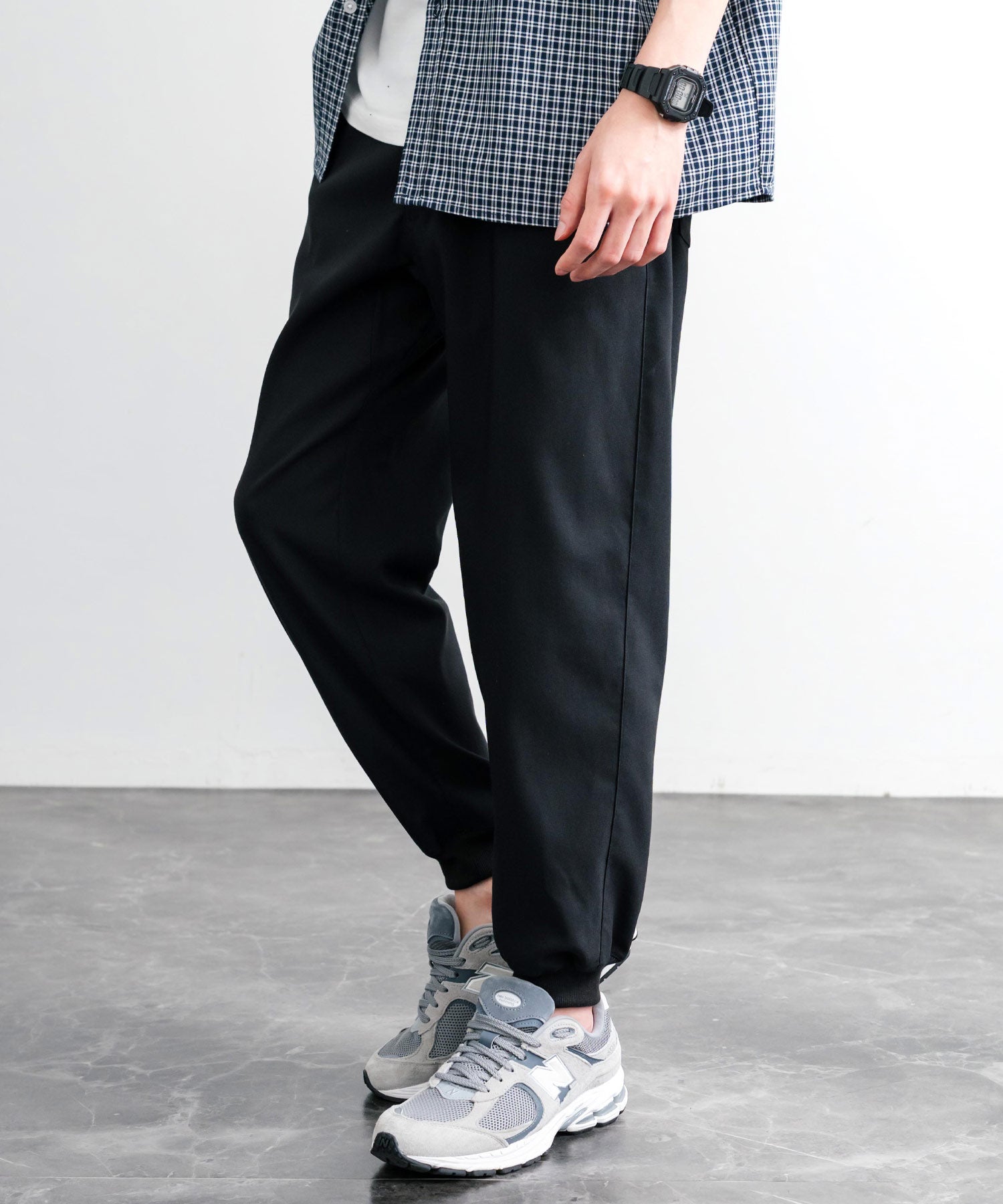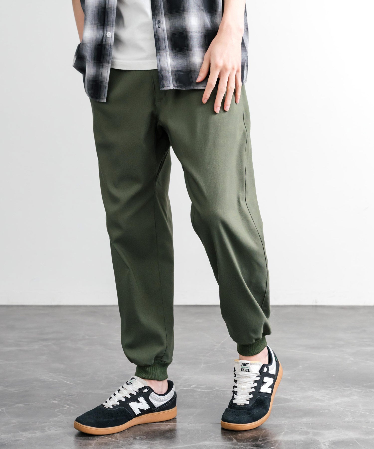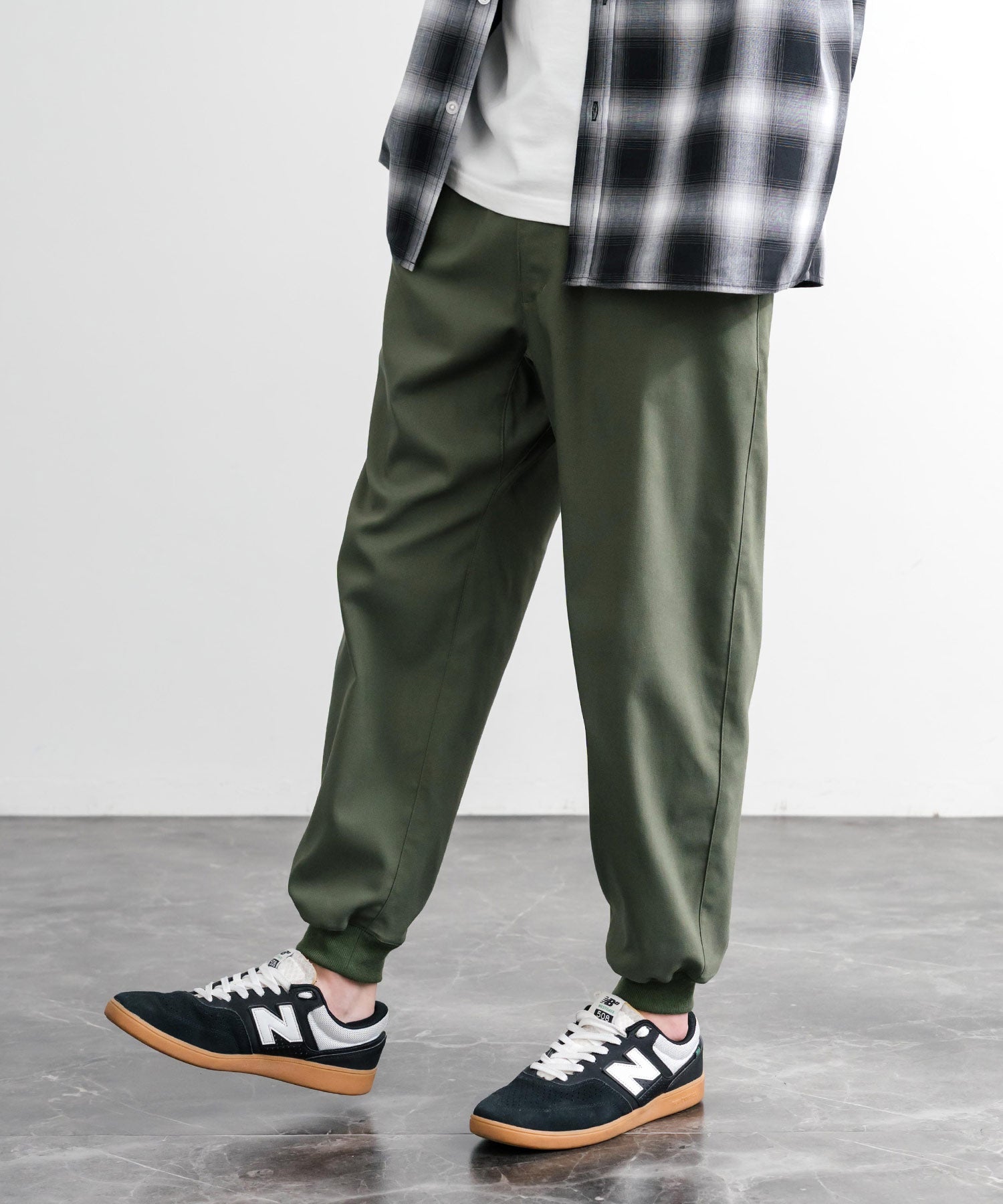 裾に向かってゆるくテーパードし、リブ仕様で仕上げたジョガースタイル。