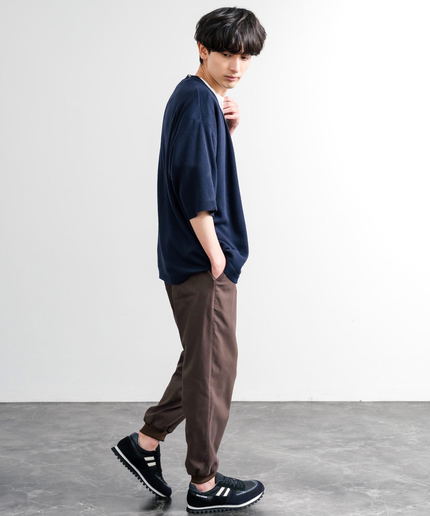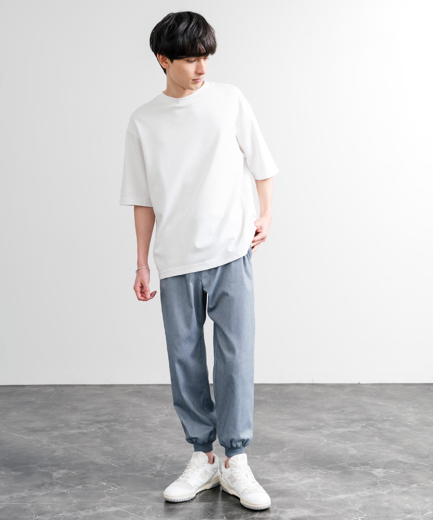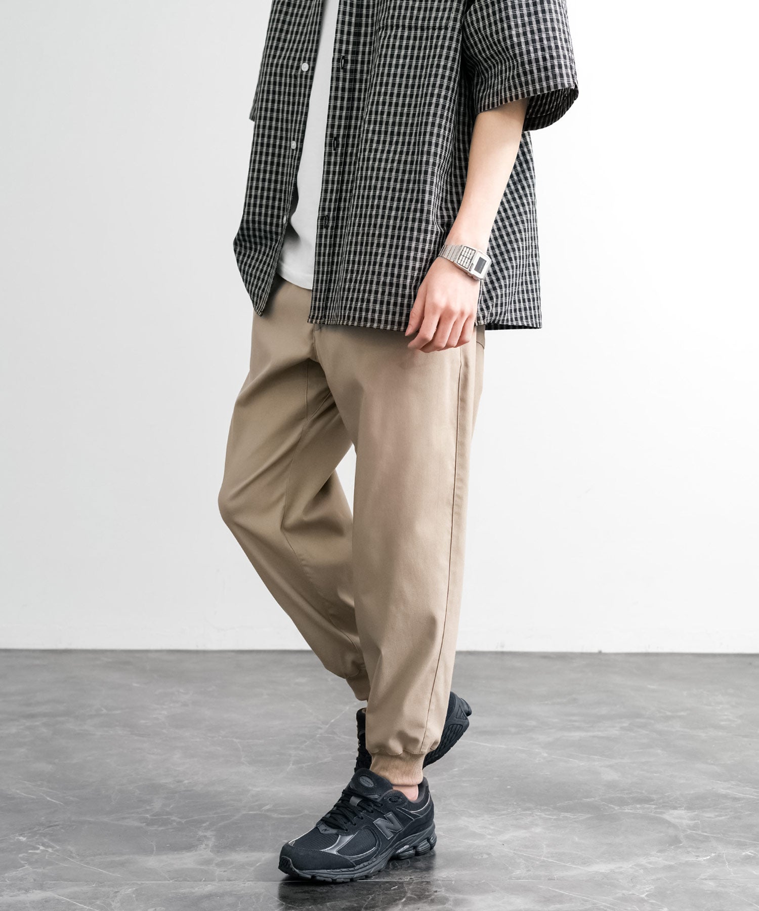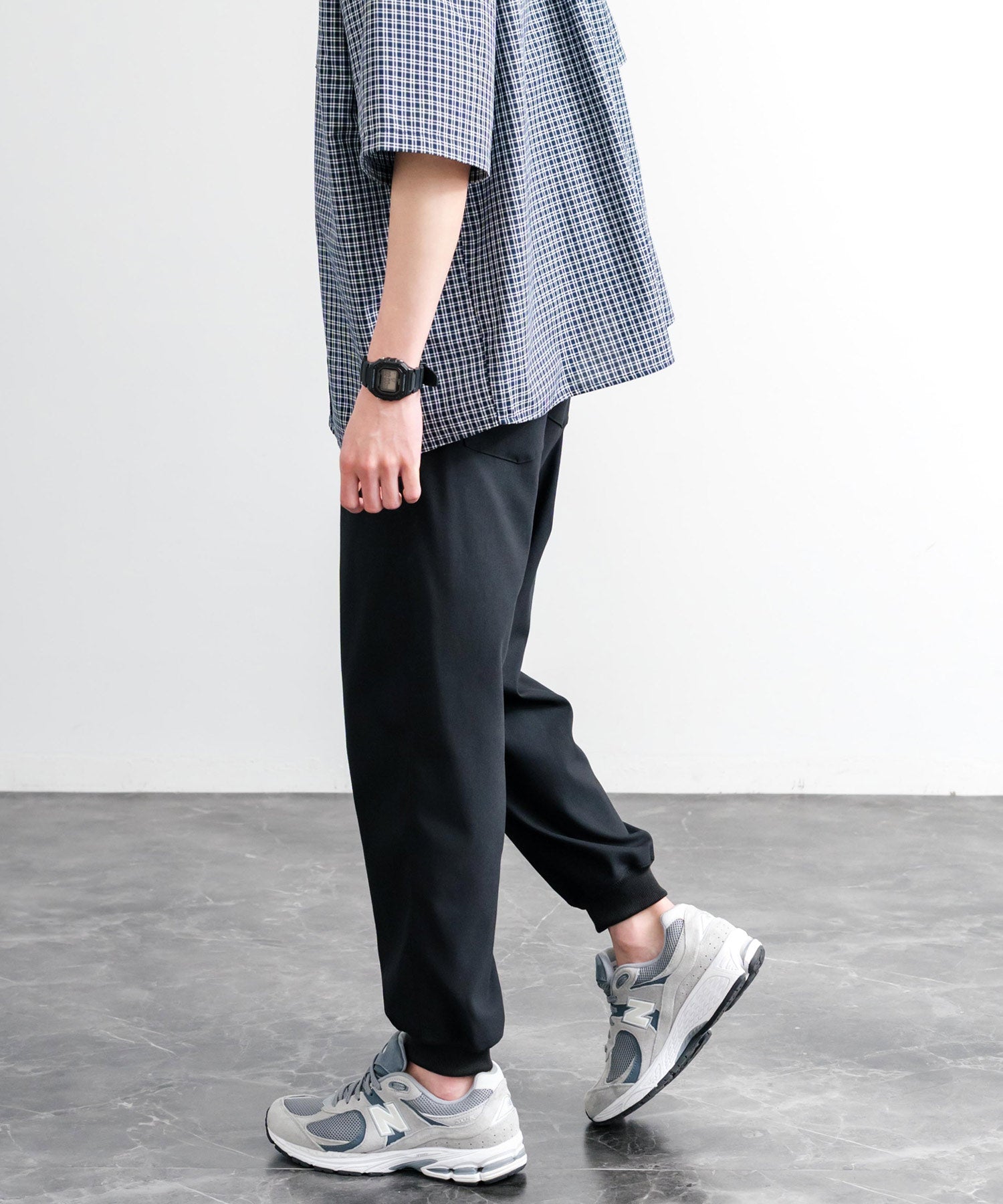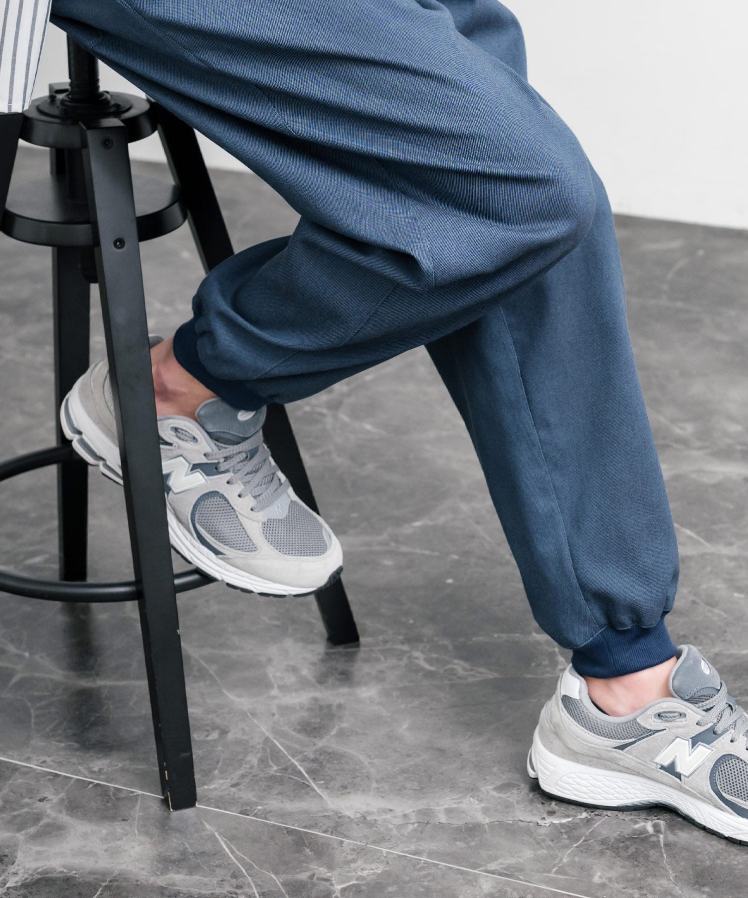裾に向かってゆるくテーパードし、リブ仕様で仕上げたジョガースタイル。