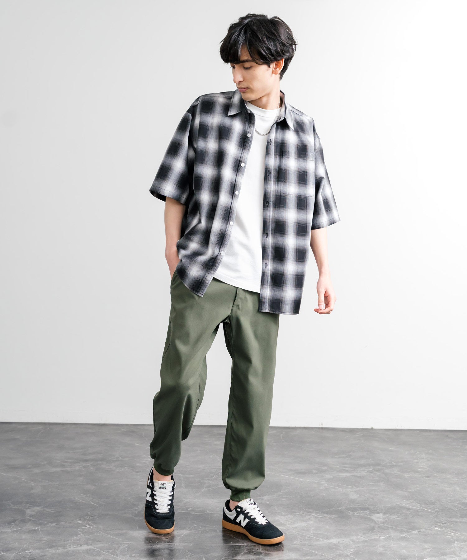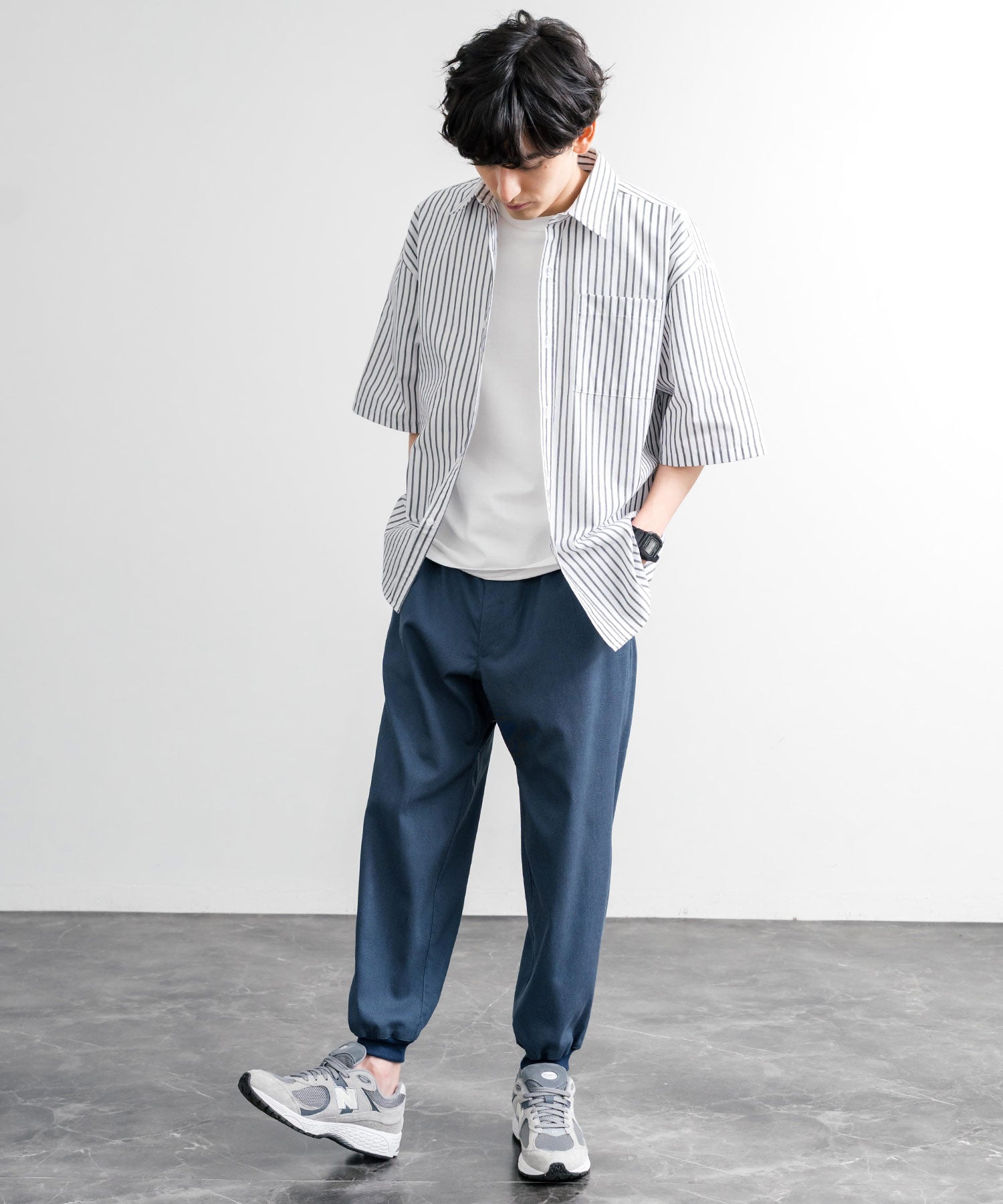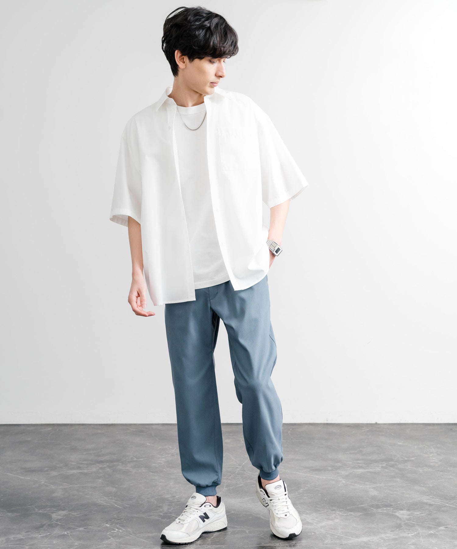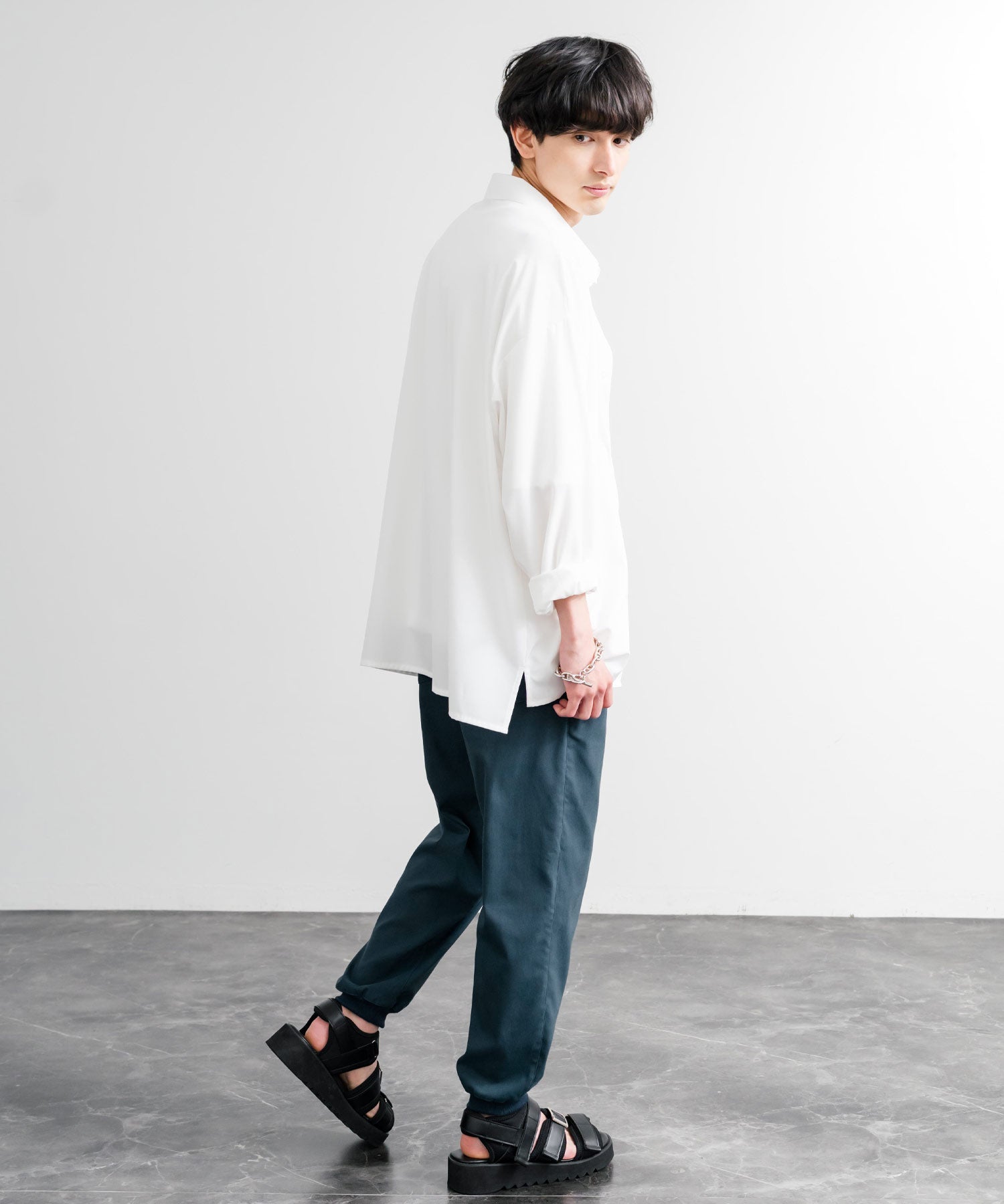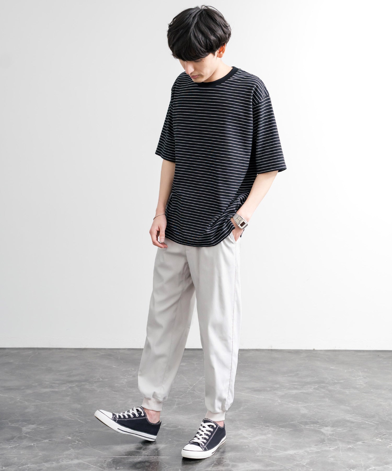 裾に向かってゆるくテーパードし、リブ仕様で仕上げたジョガースタイル。