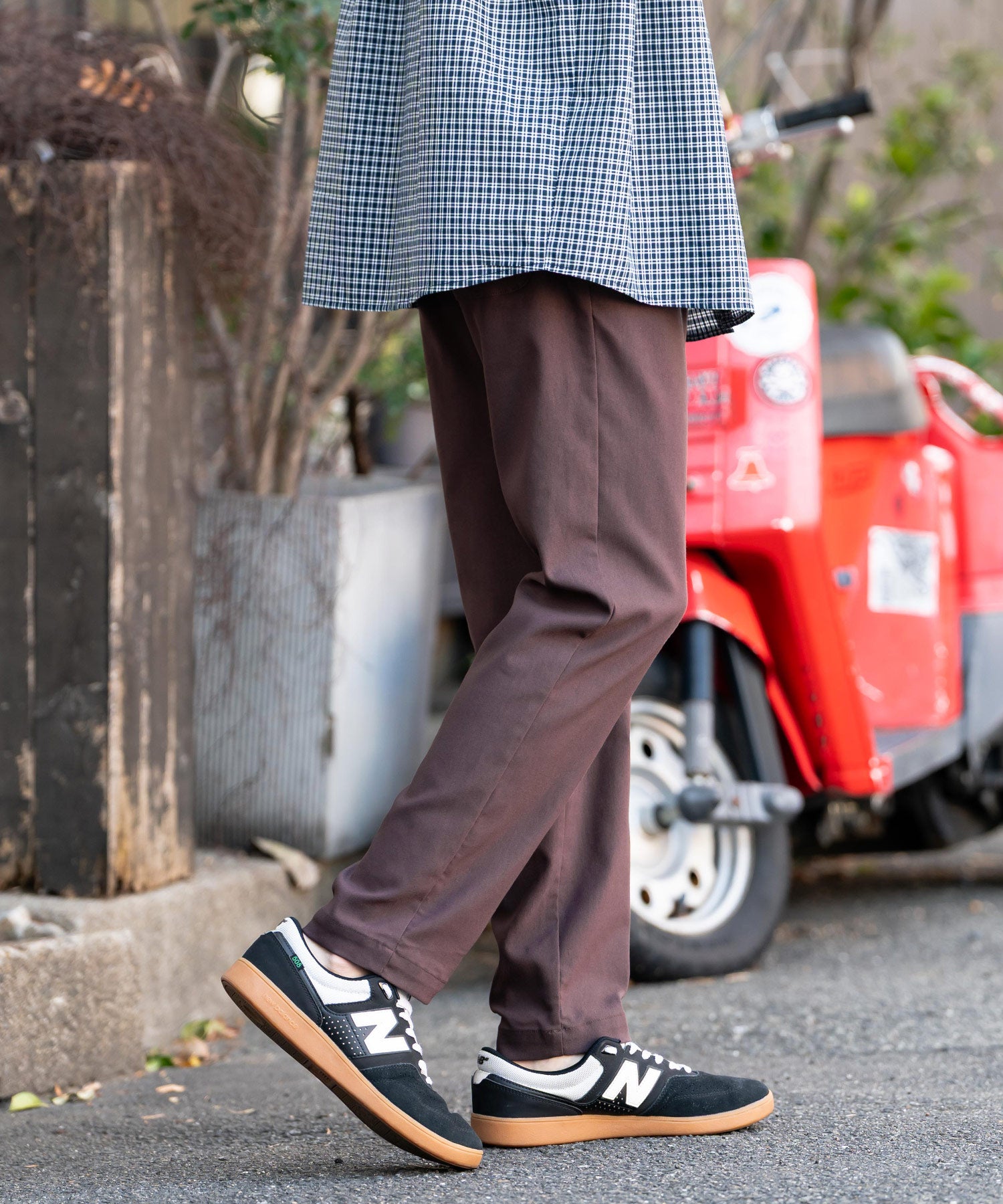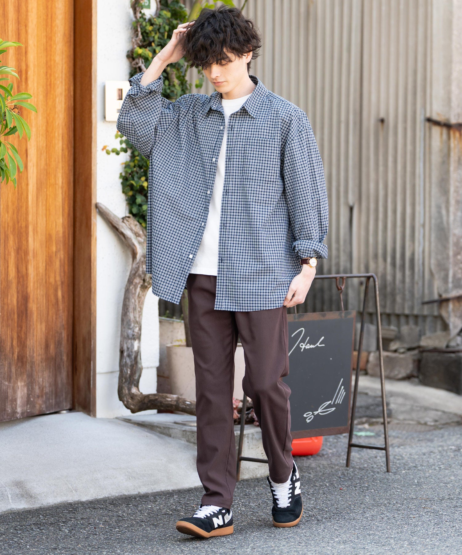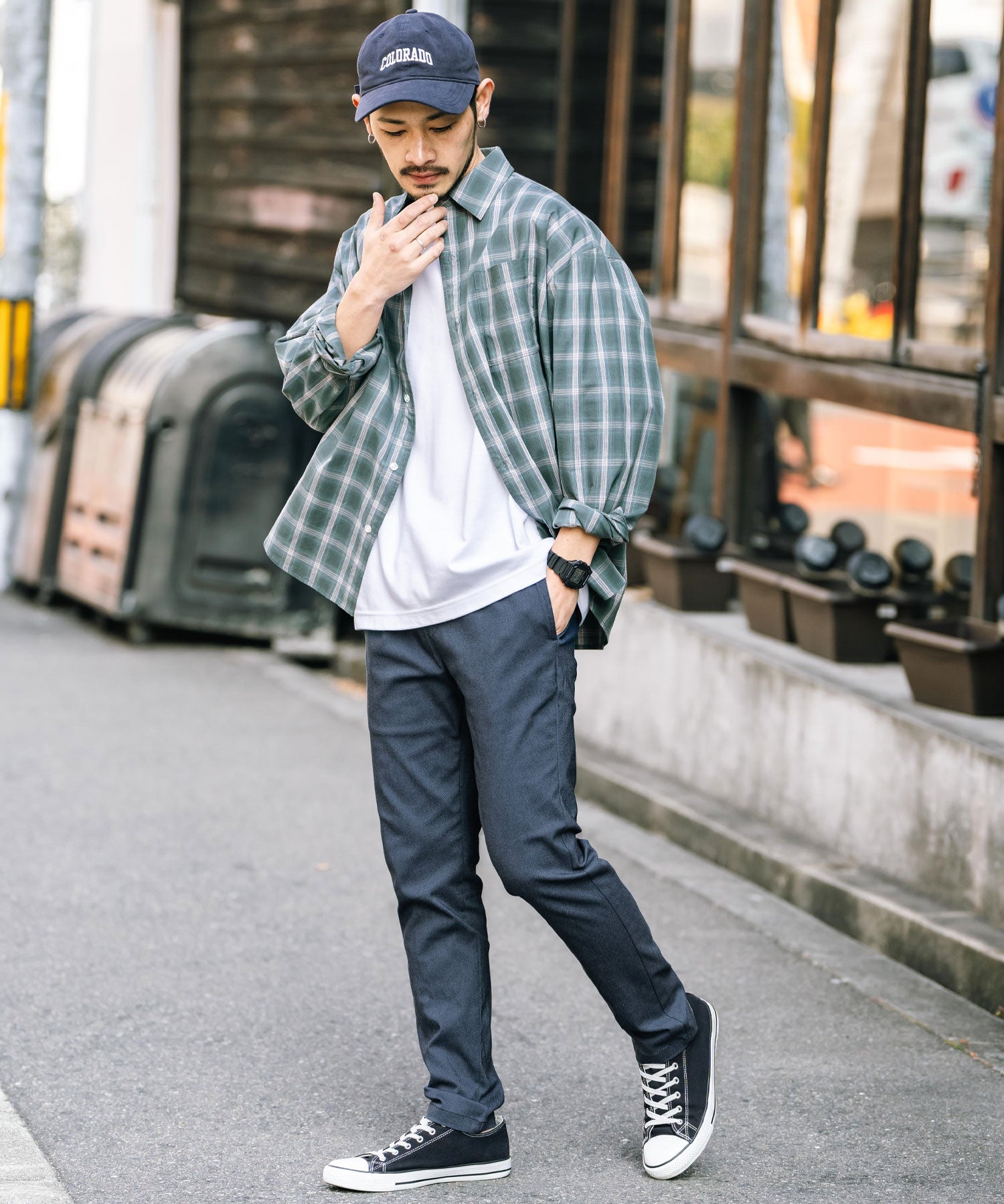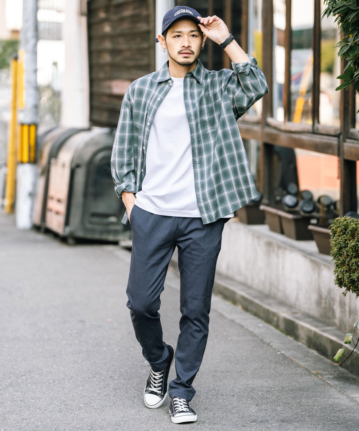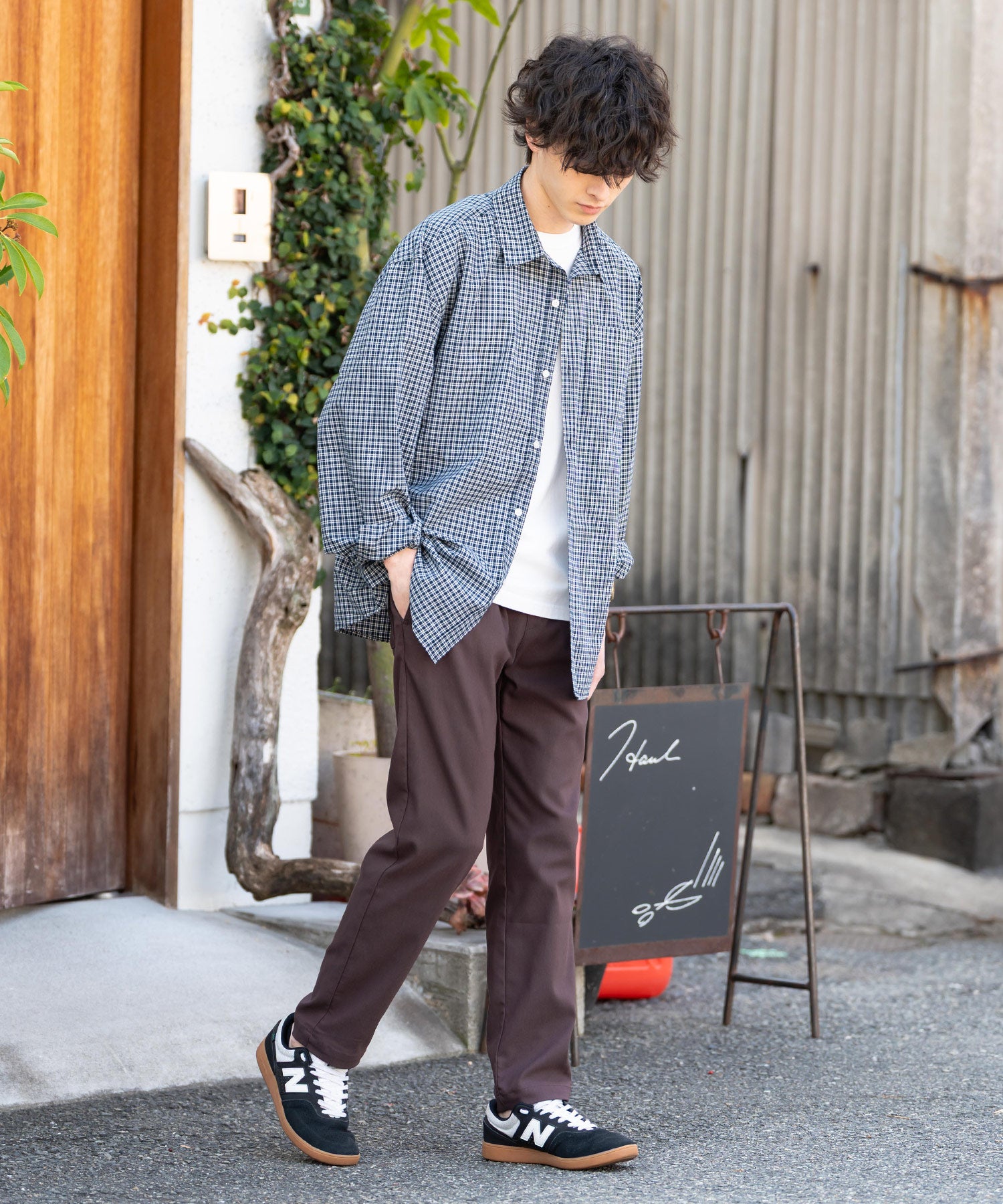 細すぎず、適度にゆとりのあるサイズ感でスッキリとした着こなしに。