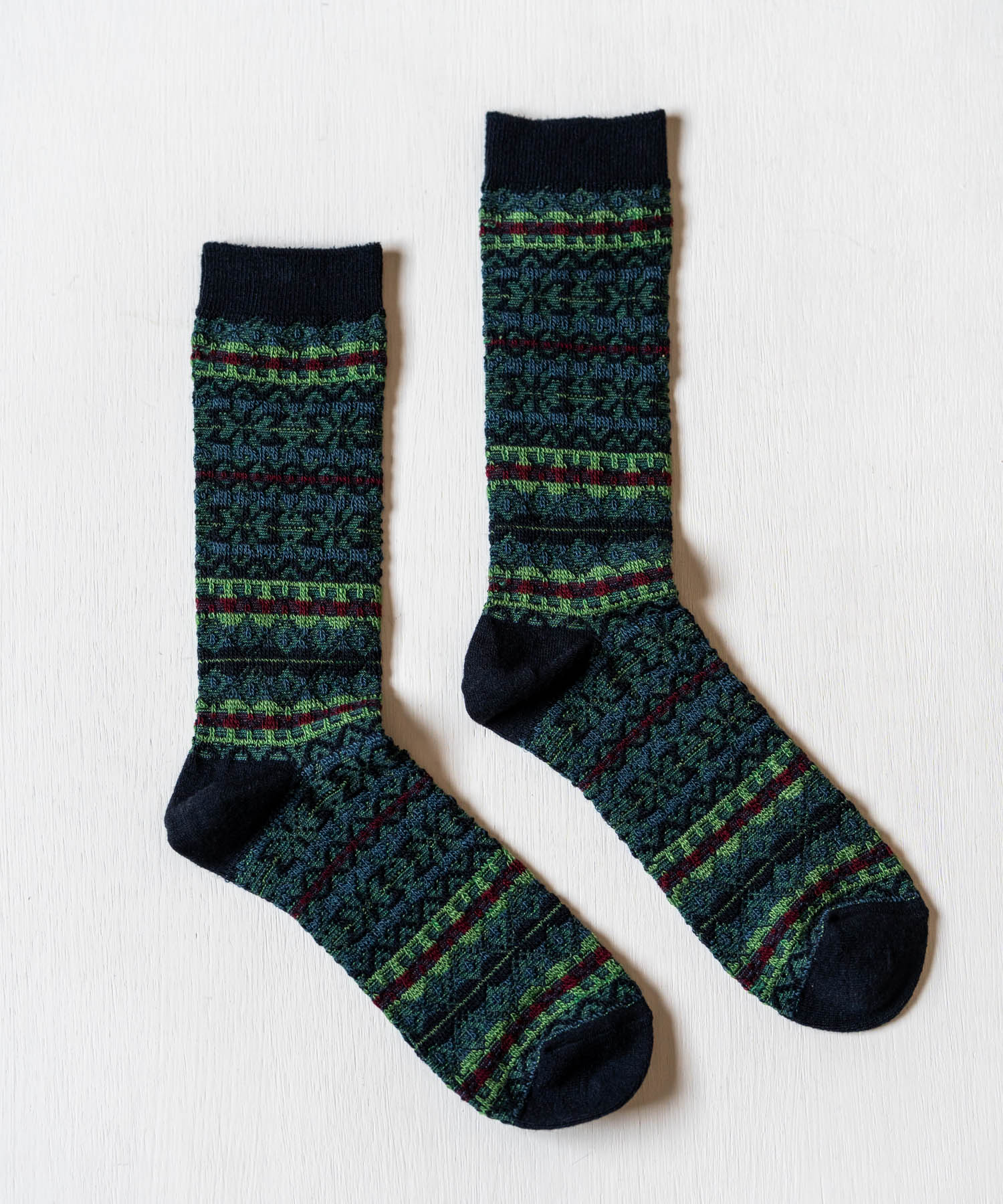 日本製で高品質!コーデのワンポイントとなるReverse FailrIsle JQ Crew/靴下。