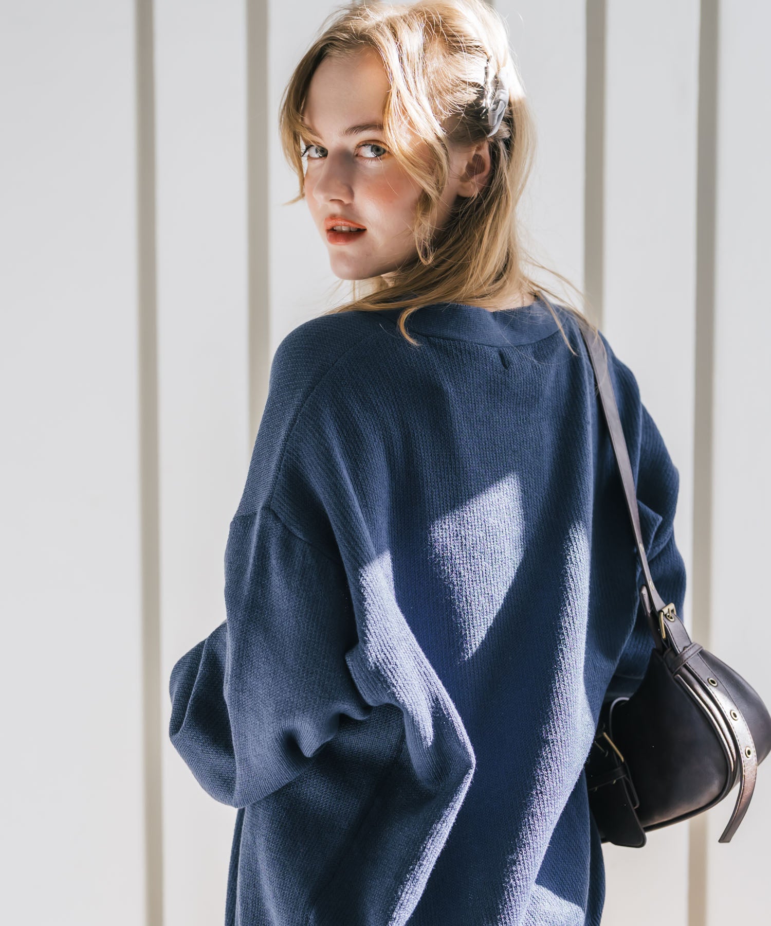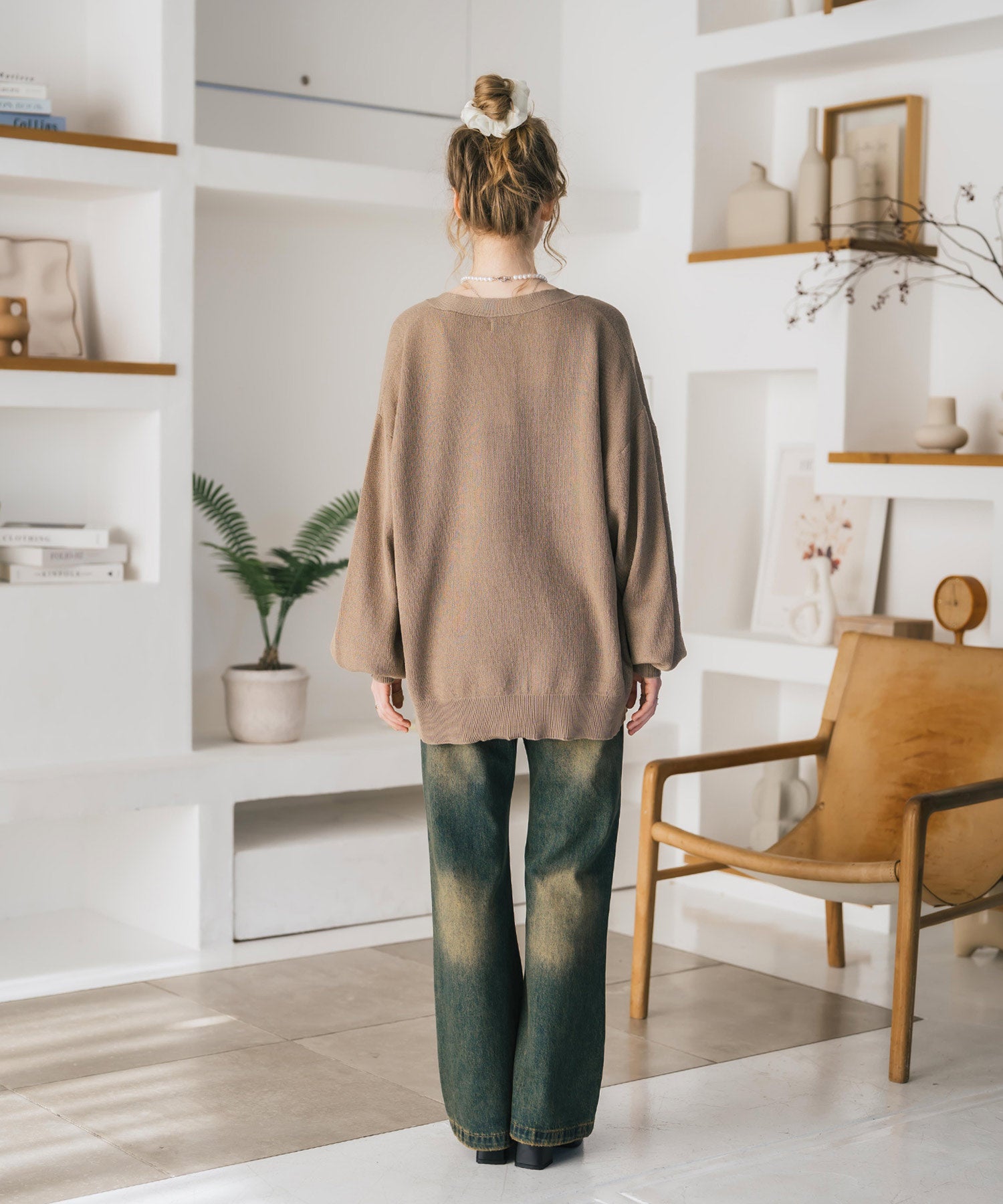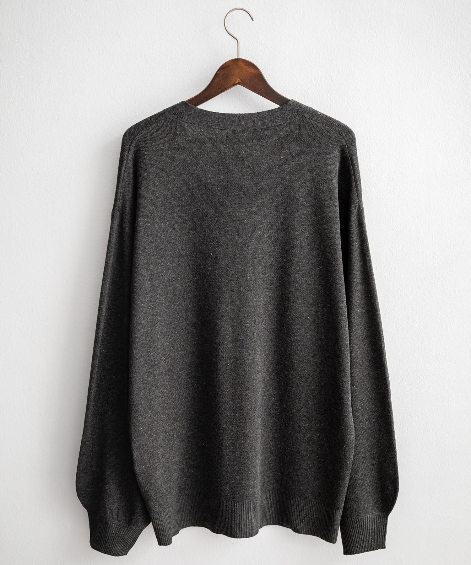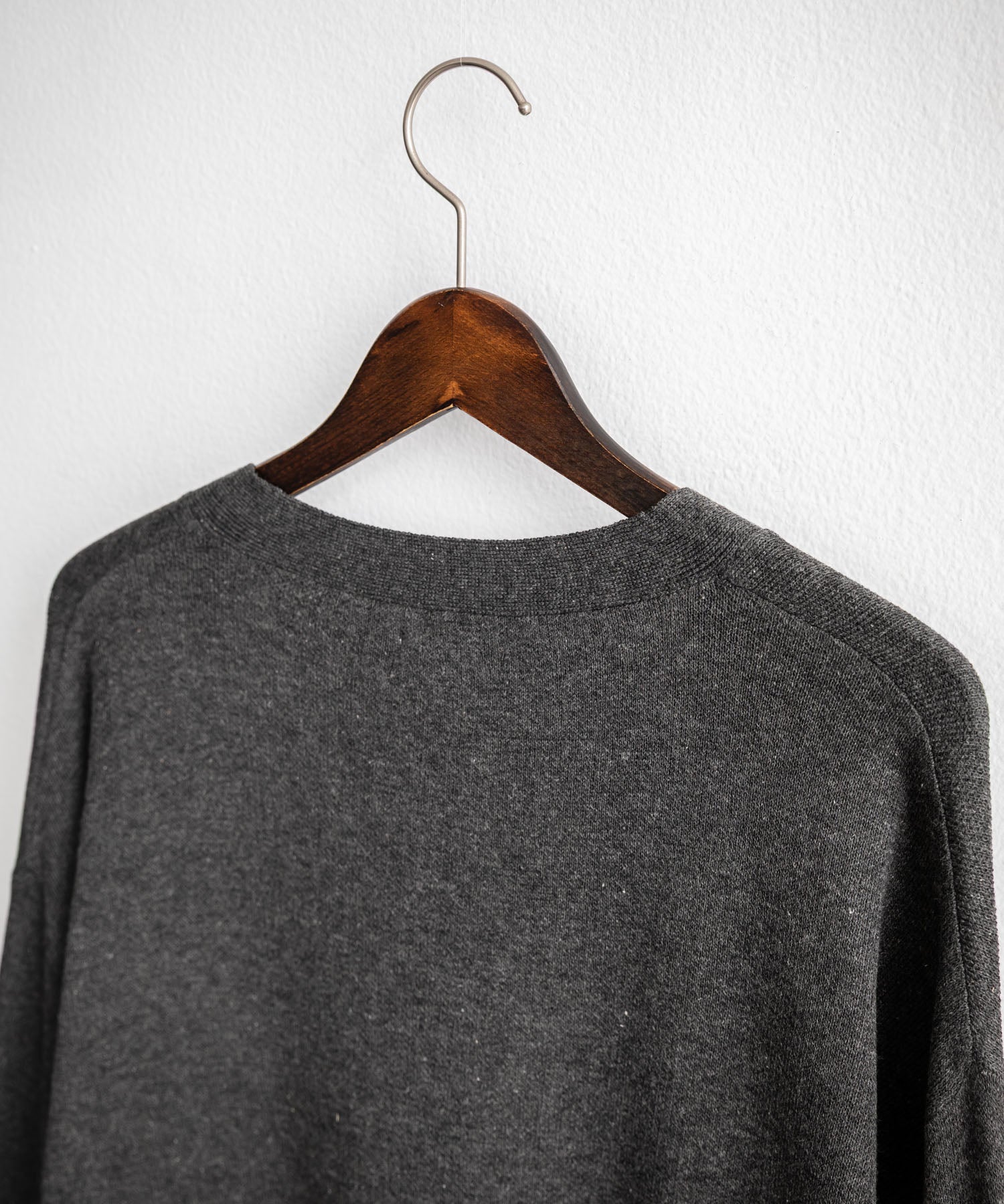 首周りがスッキリとしたVネックで、キレイめにもカジュアルにも◎