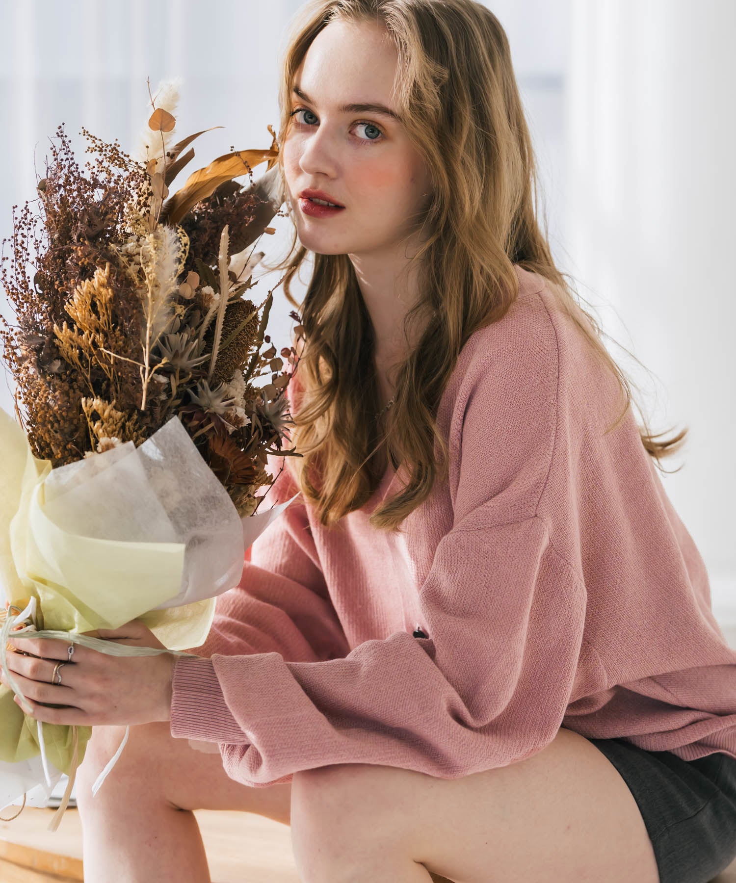 派手過ぎない落ち着いた色味で、スタイリングに華やかさをプラス。