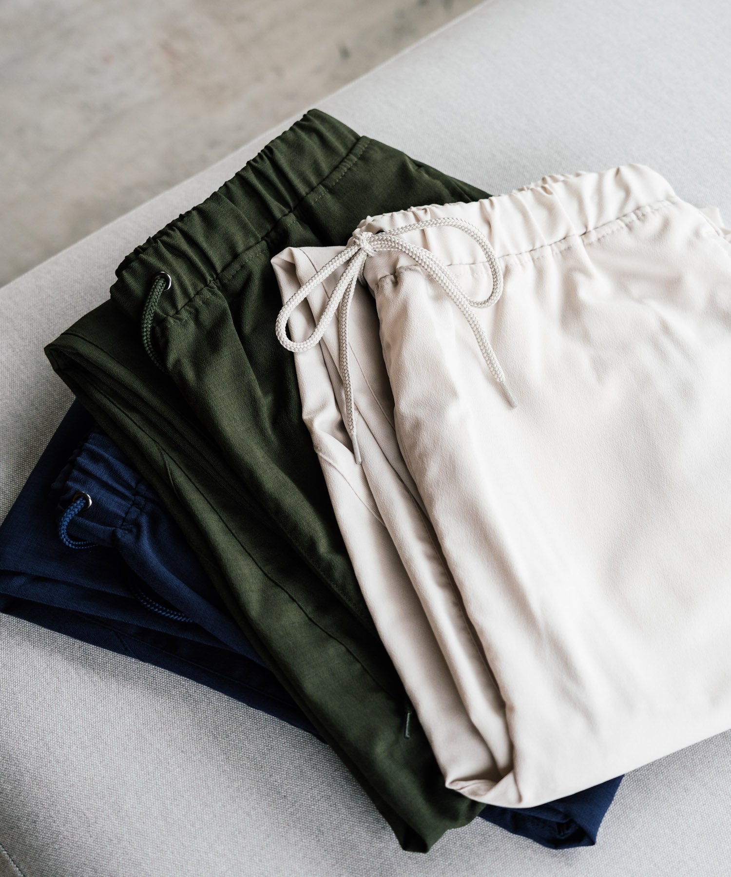 引っ張ると多少の伸縮性がある、ナチュラルなストレッチ性。