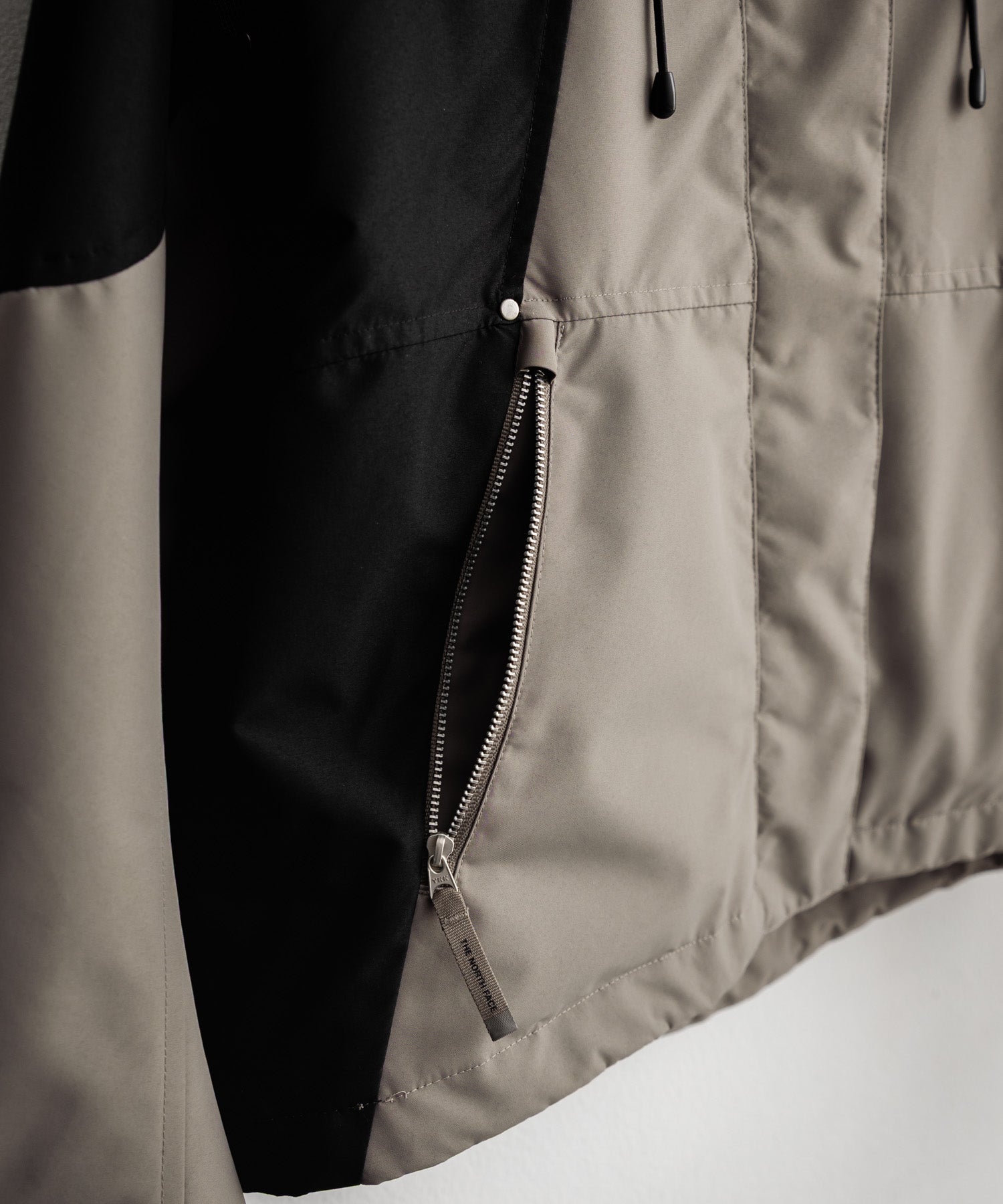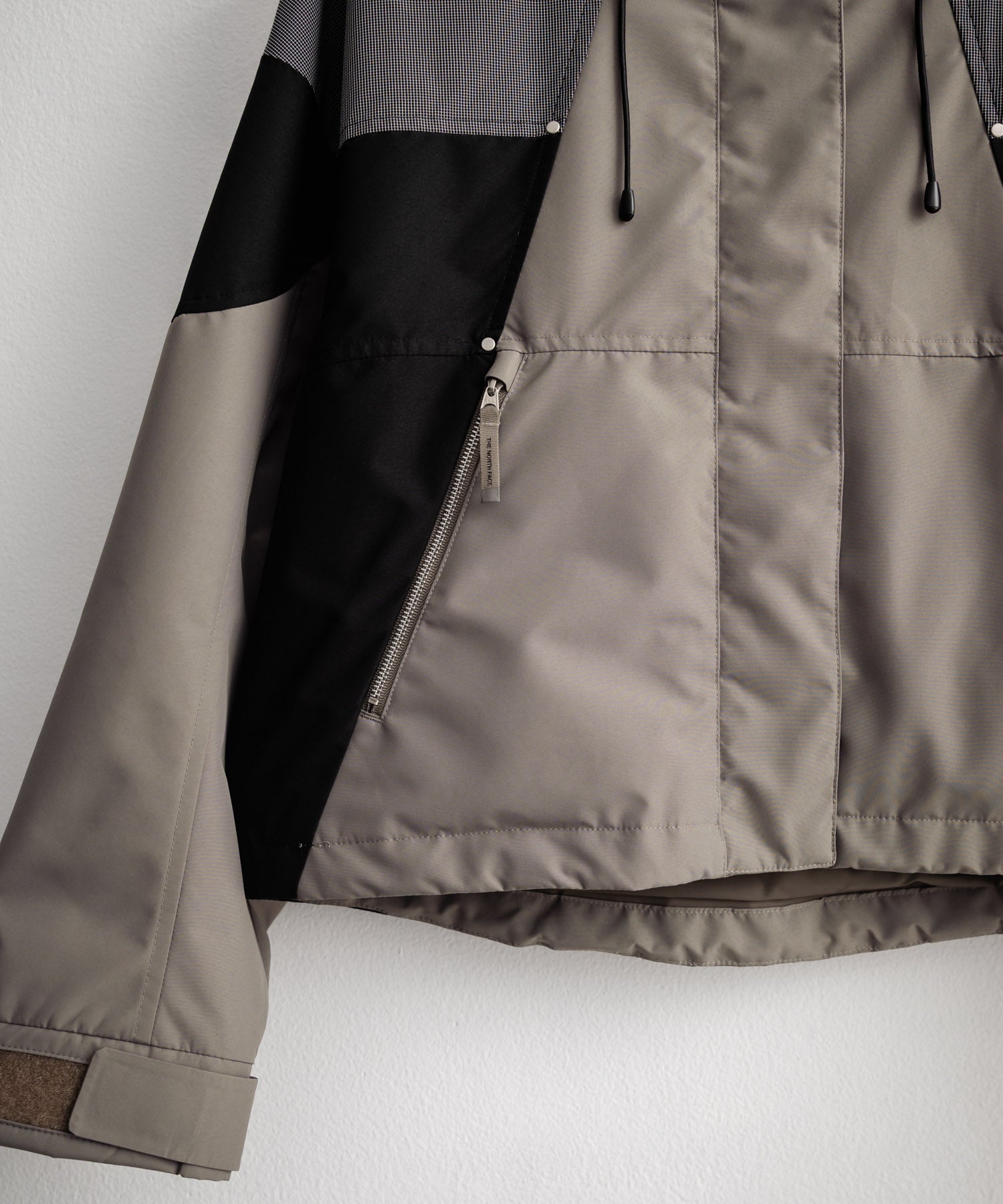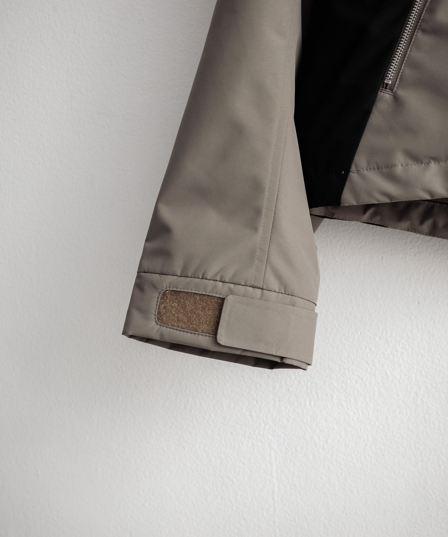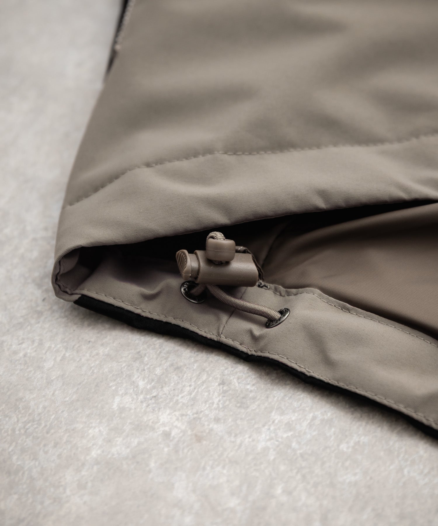 裾はドローコード、袖口はベルクロ仕様で、もたつきを抑えスッキリとした印象に。