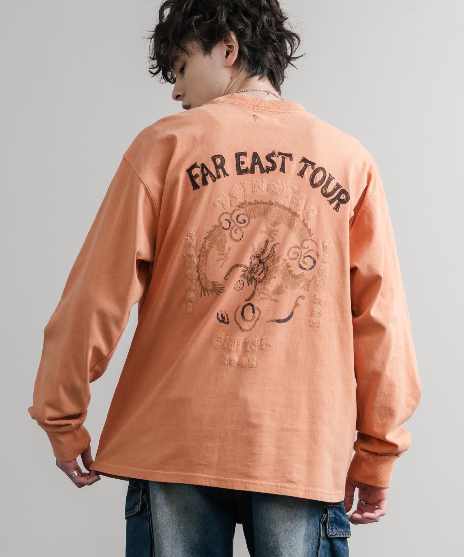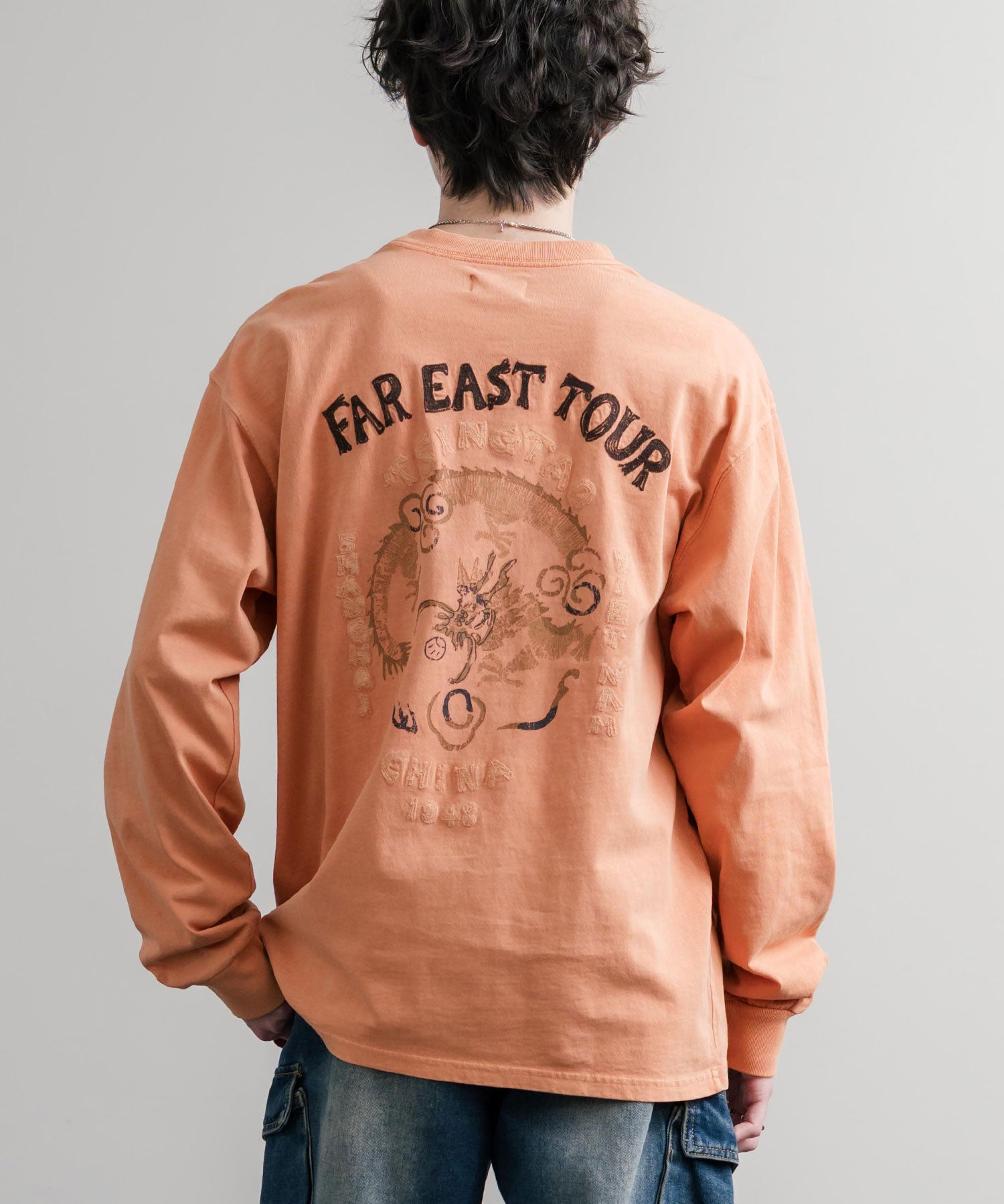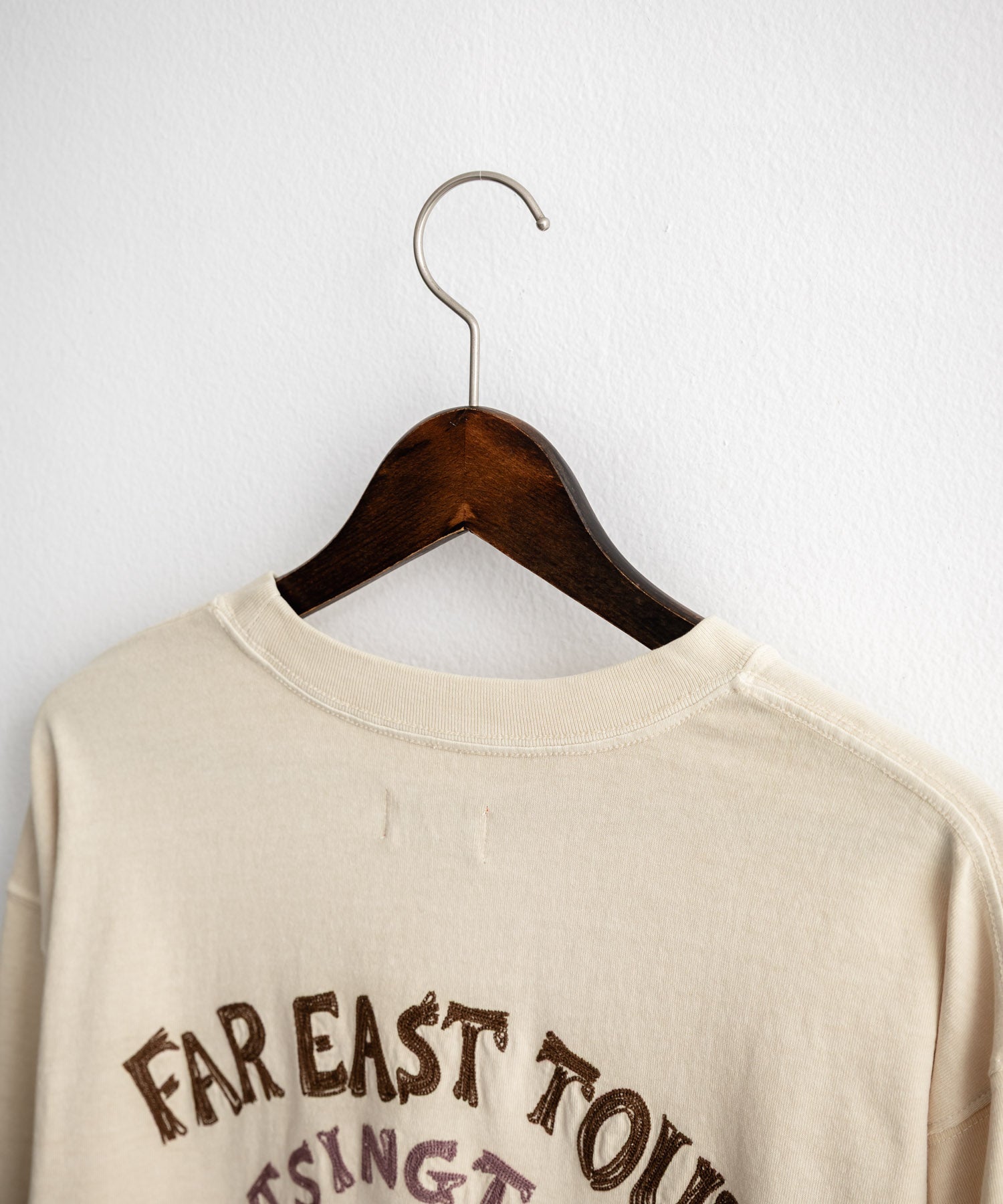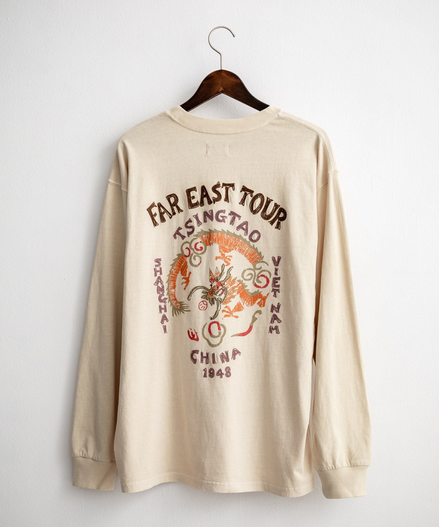 存在感抜群の刺繍調プリント!ヴィンテージライクなスーベニア刺繍長袖Tシャツ/カットソー。