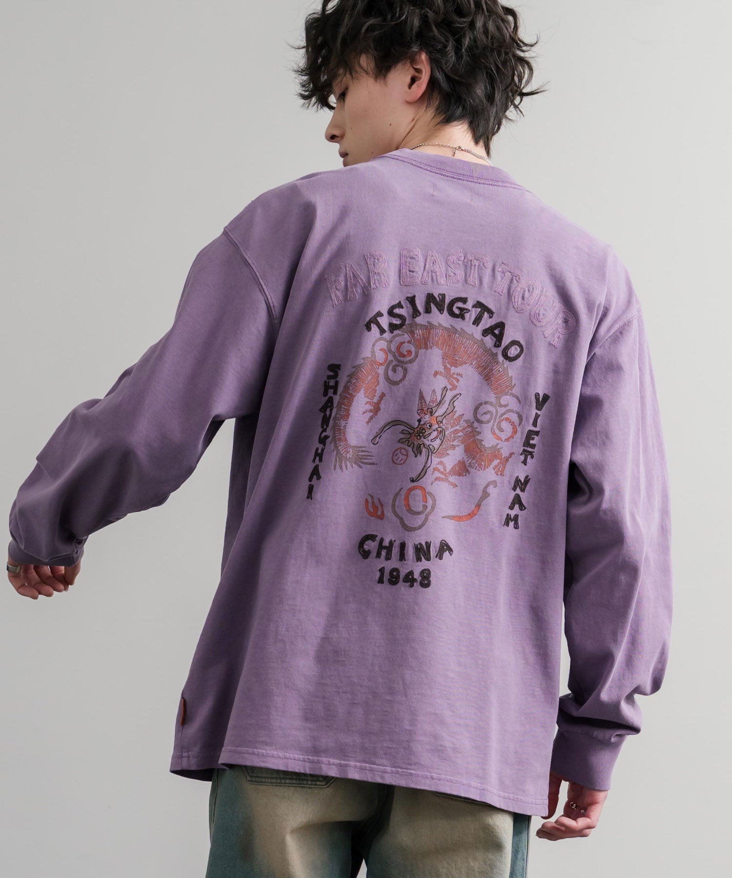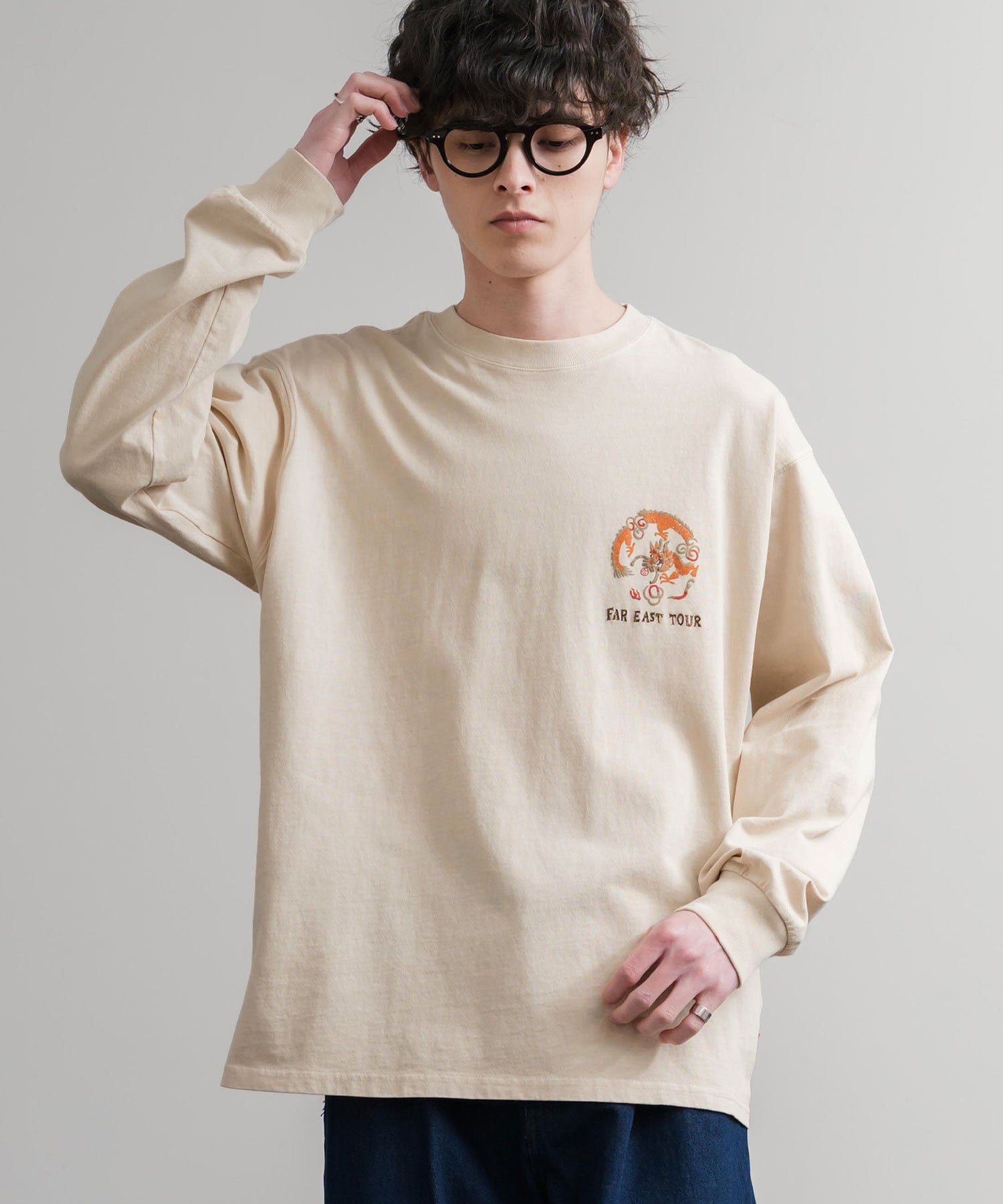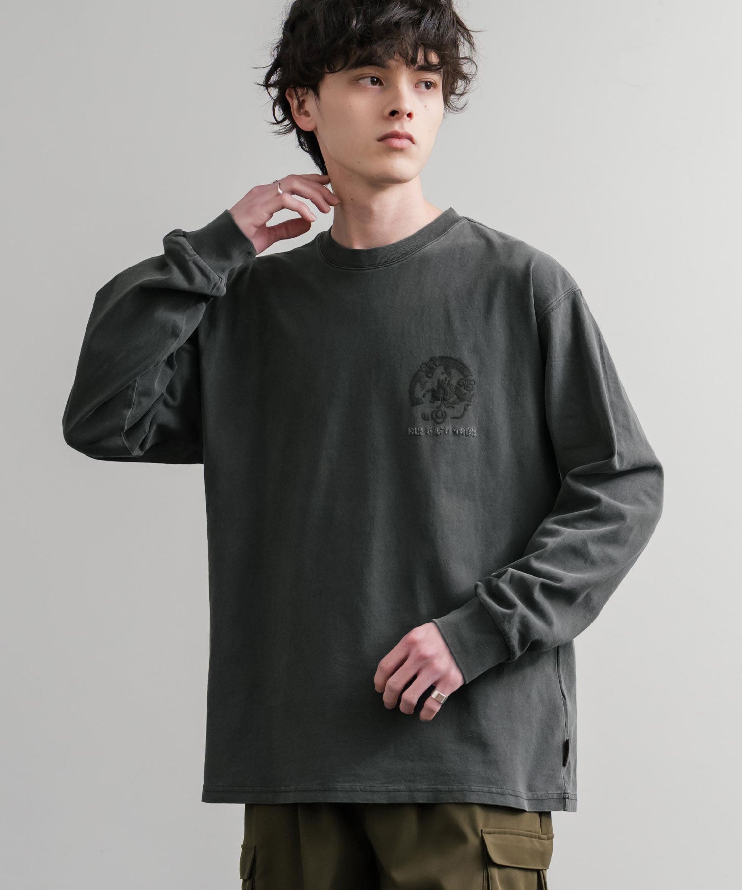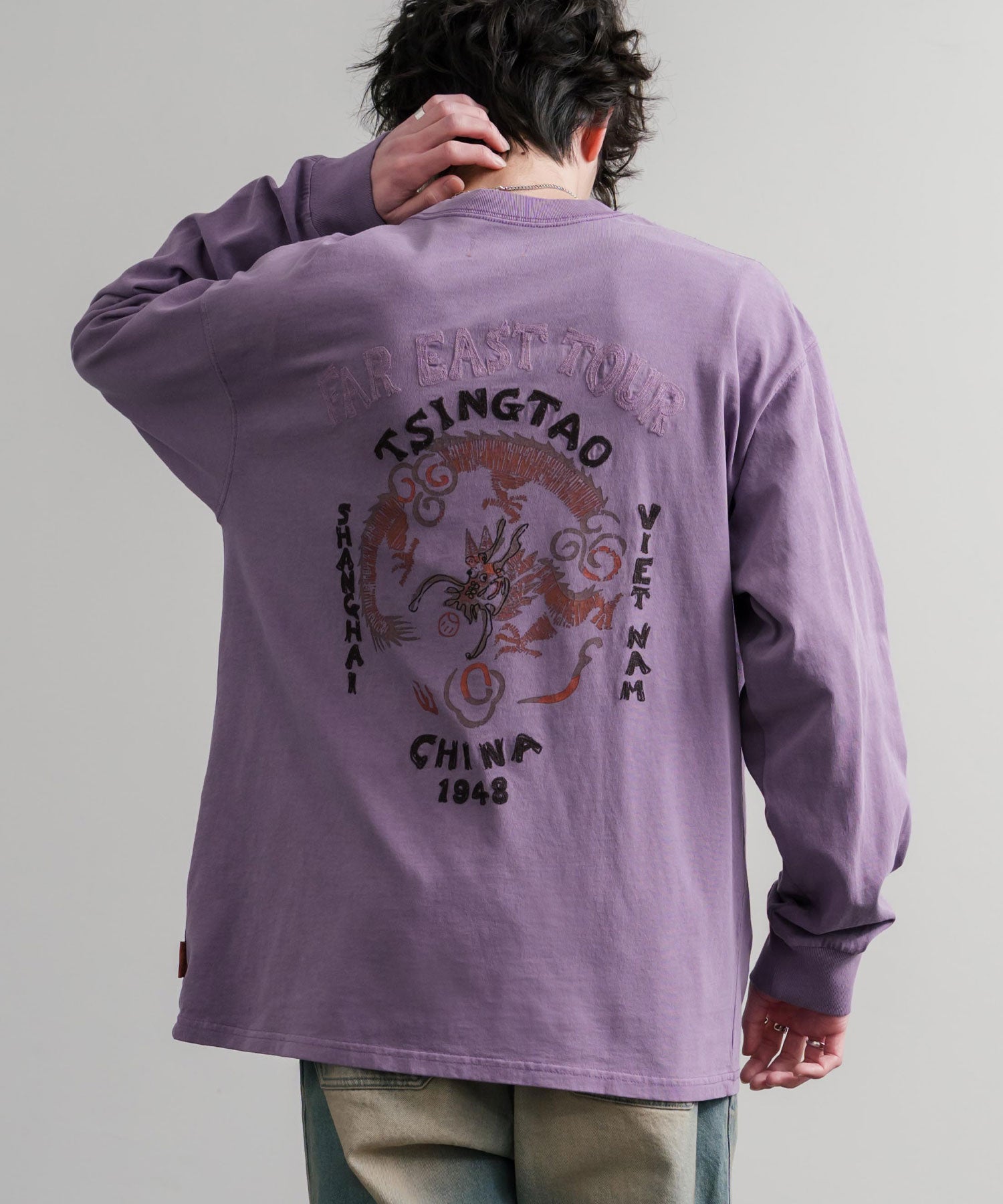 存在感抜群の刺繍調プリント!ヴィンテージライクなスーベニア刺繍長袖Tシャツ/カットソー。