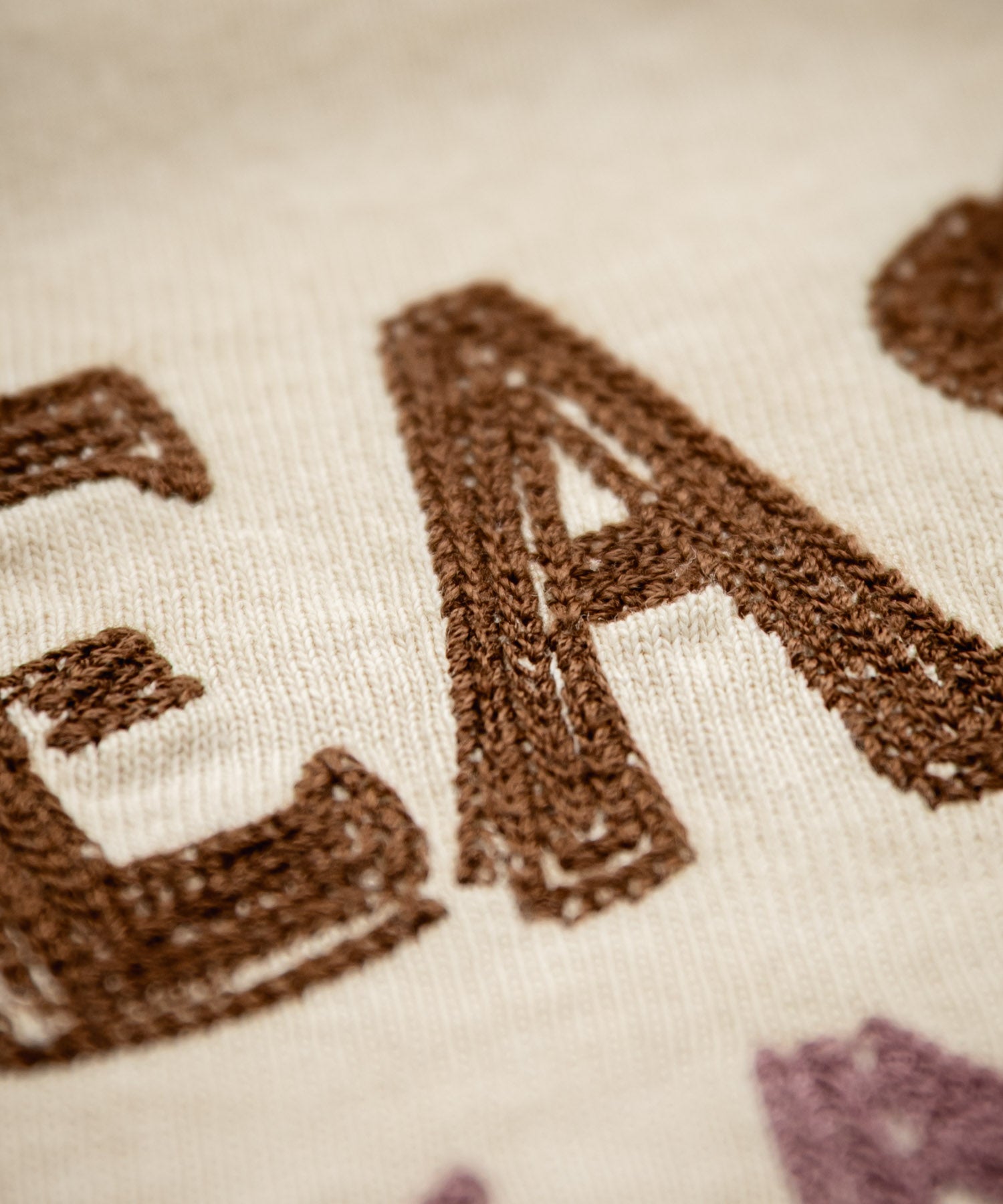 文字の部分は、チェーン刺繍を施し、レトロで味のある雰囲気です。