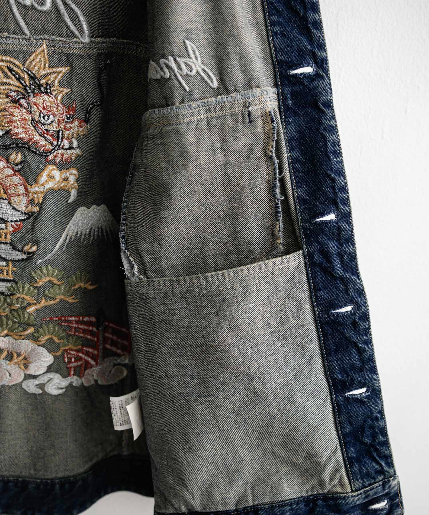 バックに施されたスーベニア刺繍がインパクト抜群のアイテム。