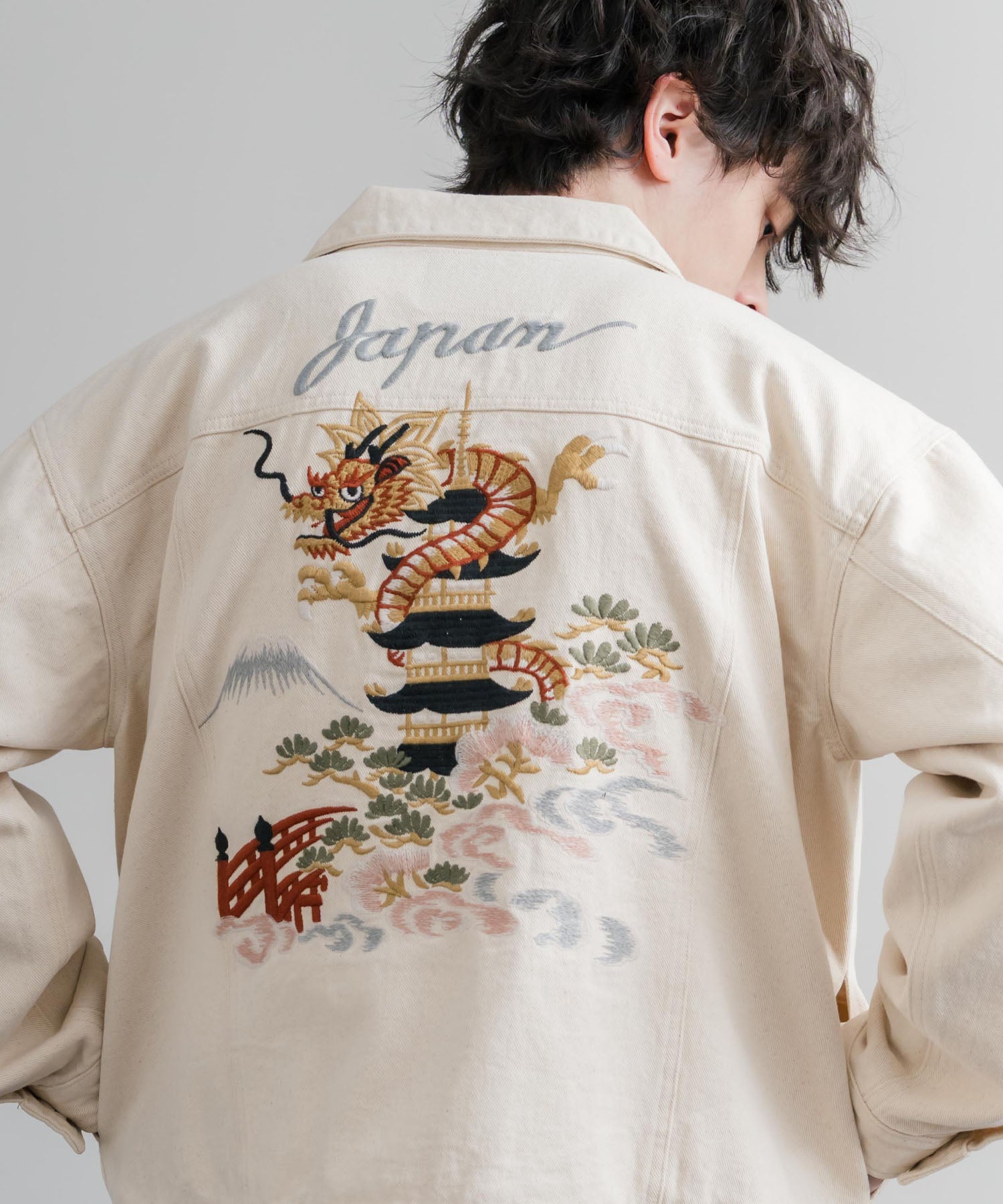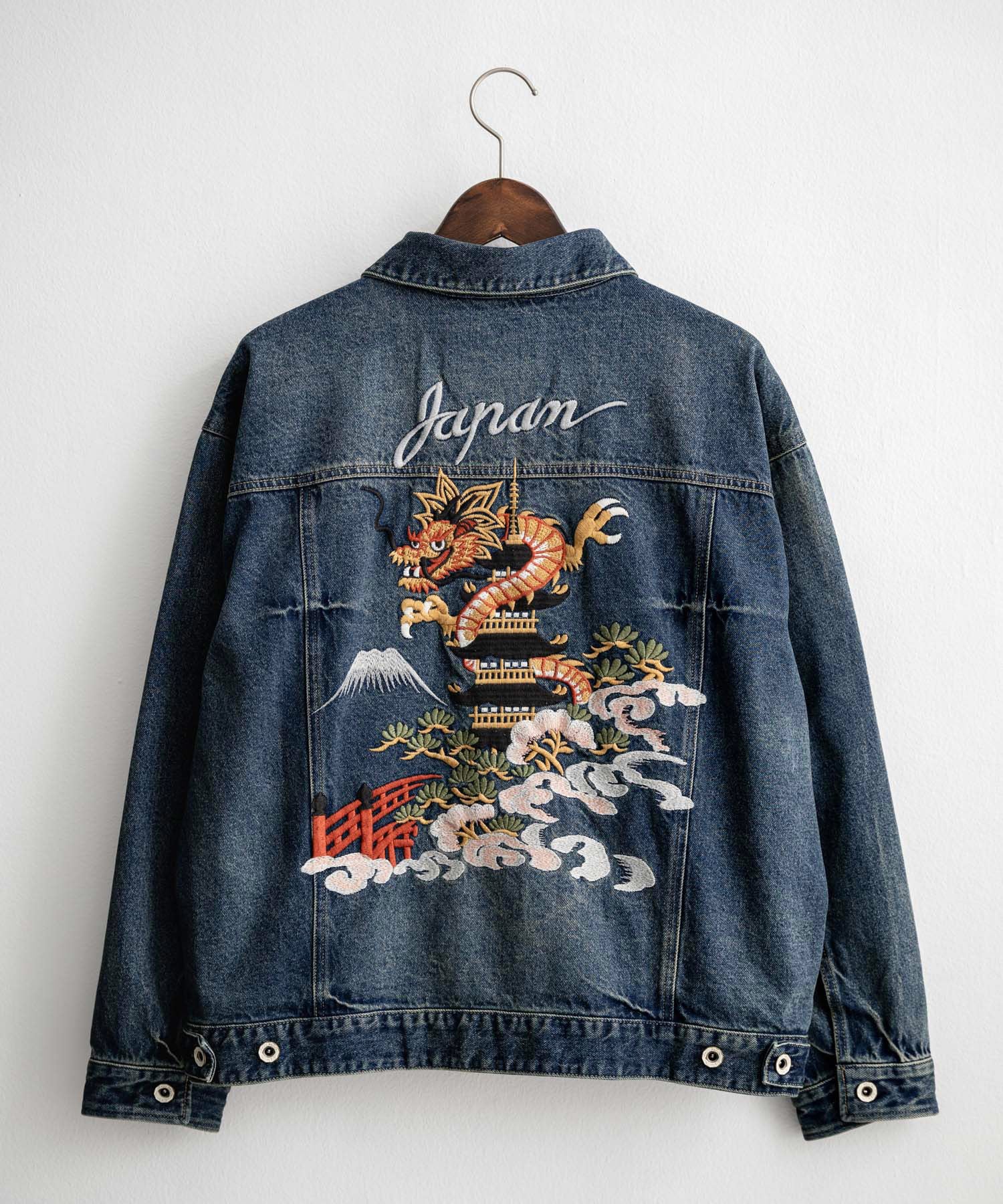 五重塔・富士山・龍と、日本の伝統美を感じさせる刺繍がポイント。
