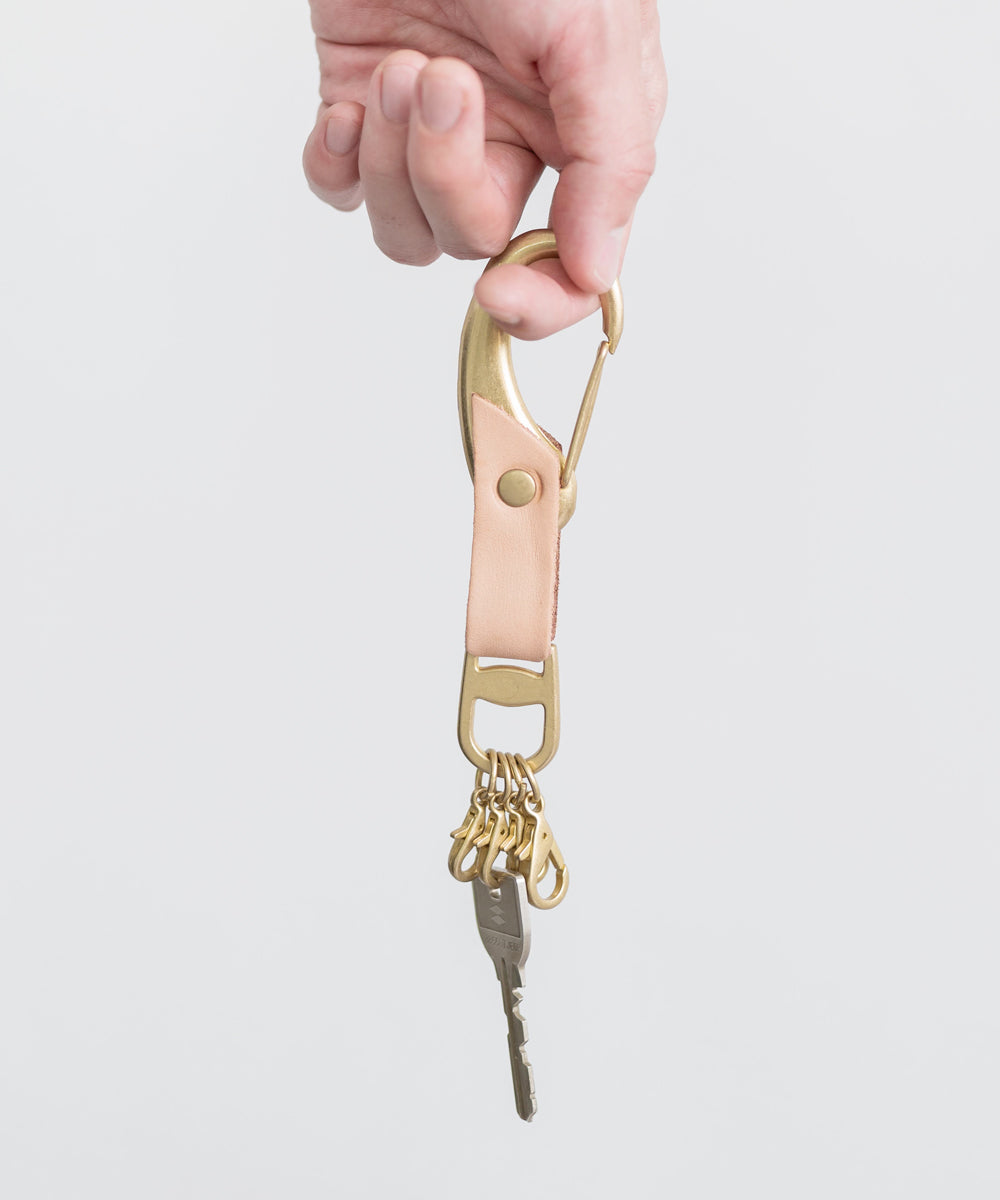 船具で使われる丈夫なマガタマ型の金具を使用した、4連キーホルダー。