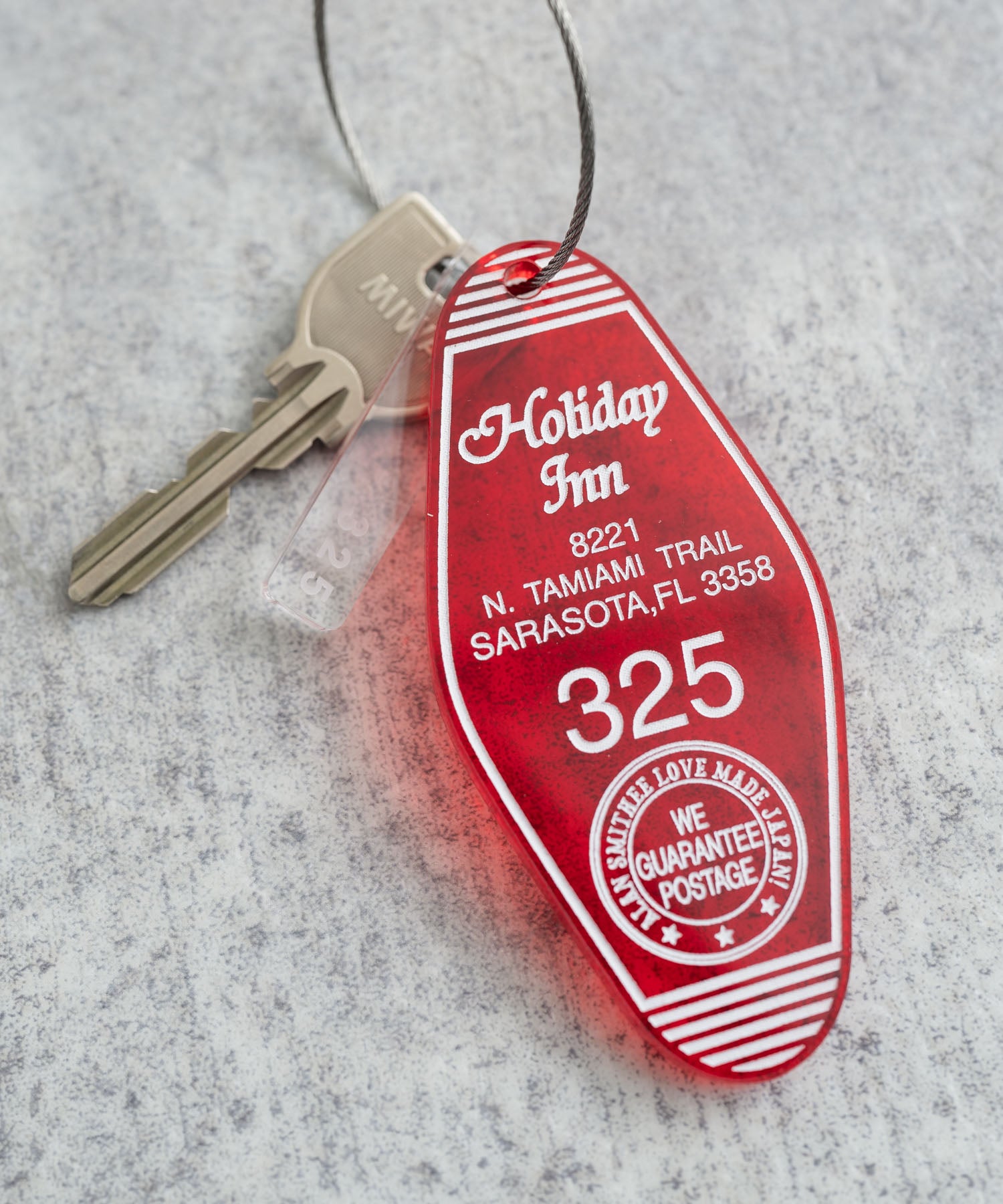 アメリカのモーテルキーをオマージュした、レトロな雰囲気の国産キーホルダー。