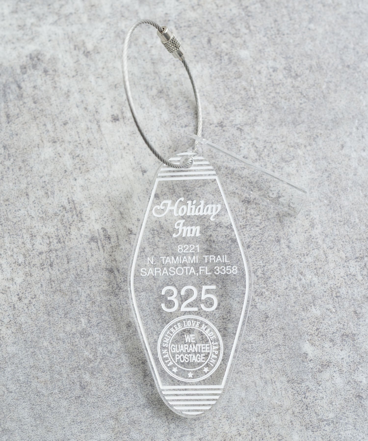 アメリカのモーテルキーをオマージュした、レトロな雰囲気のキーホルダー。